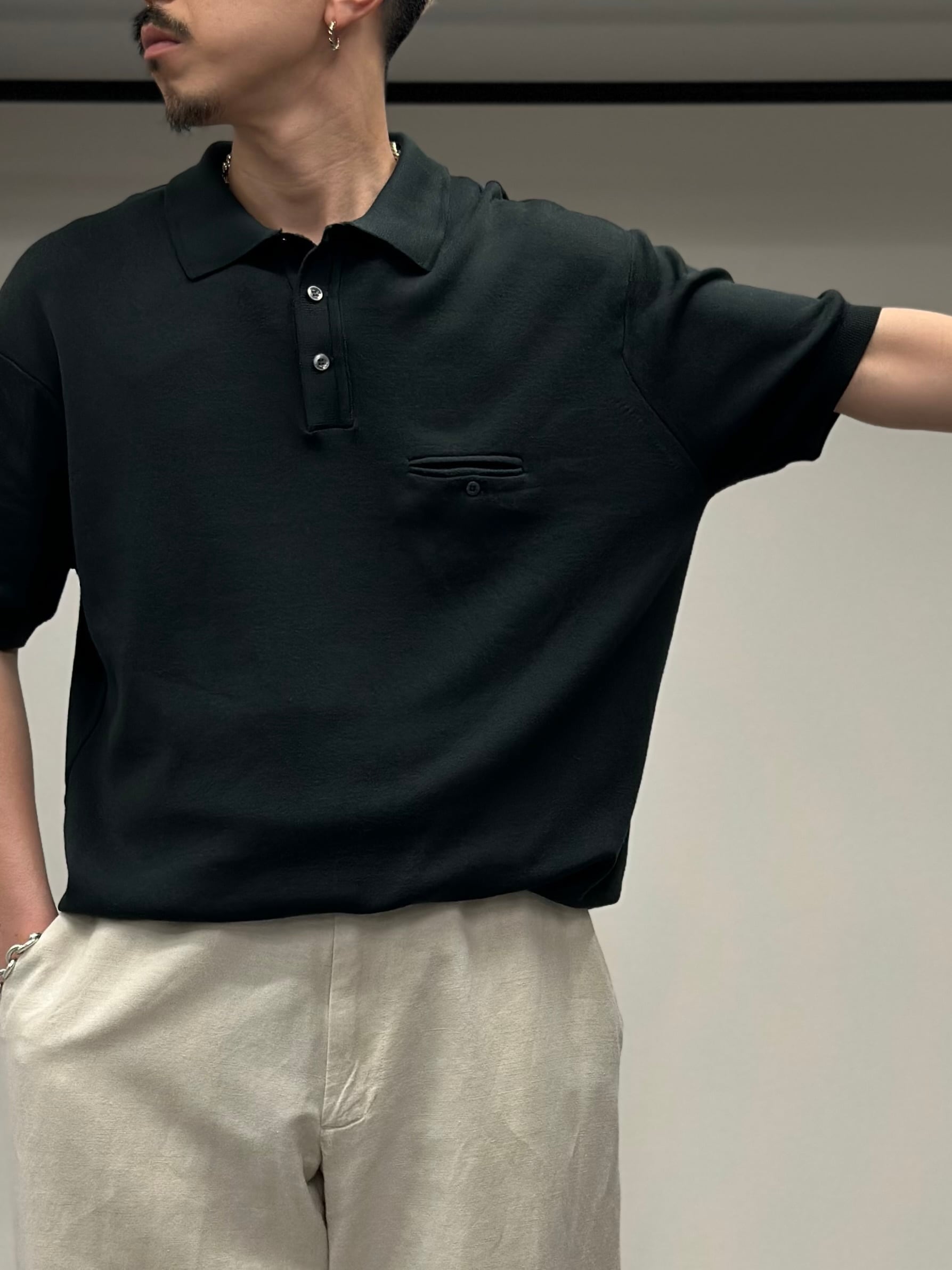 GaranのバンロンファブリックのS/Sニットポロシャツ。