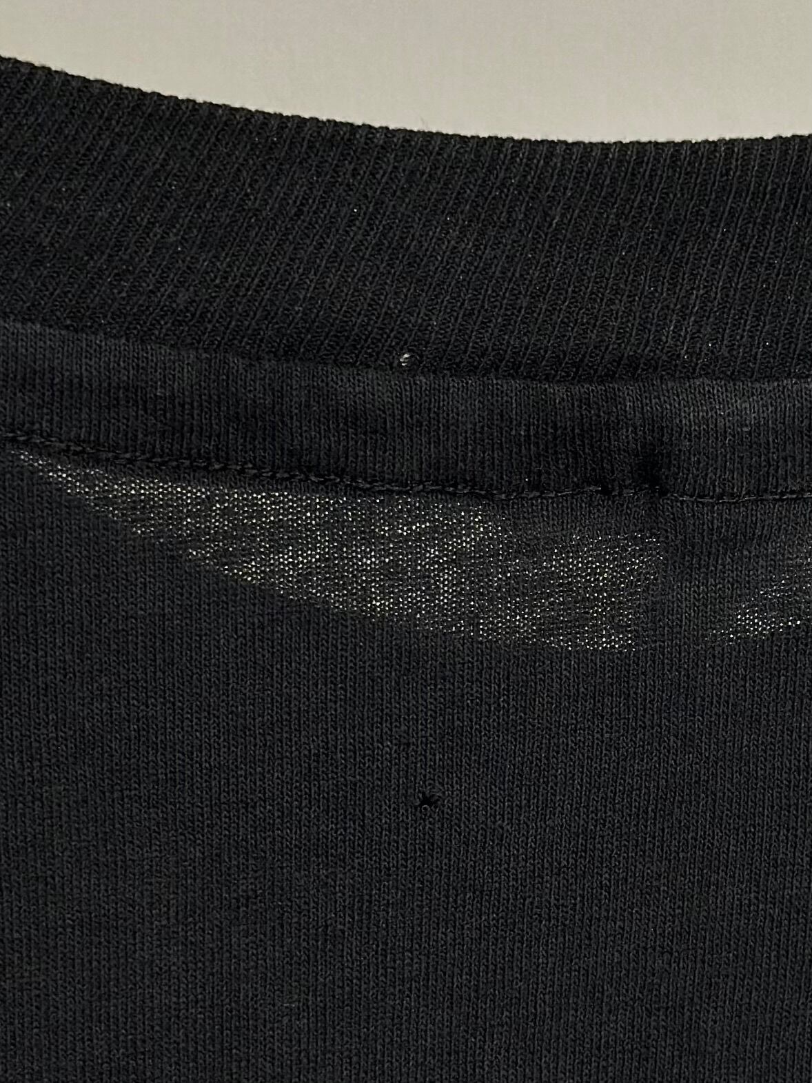 後ろ襟リブとその下にピンホールあり。