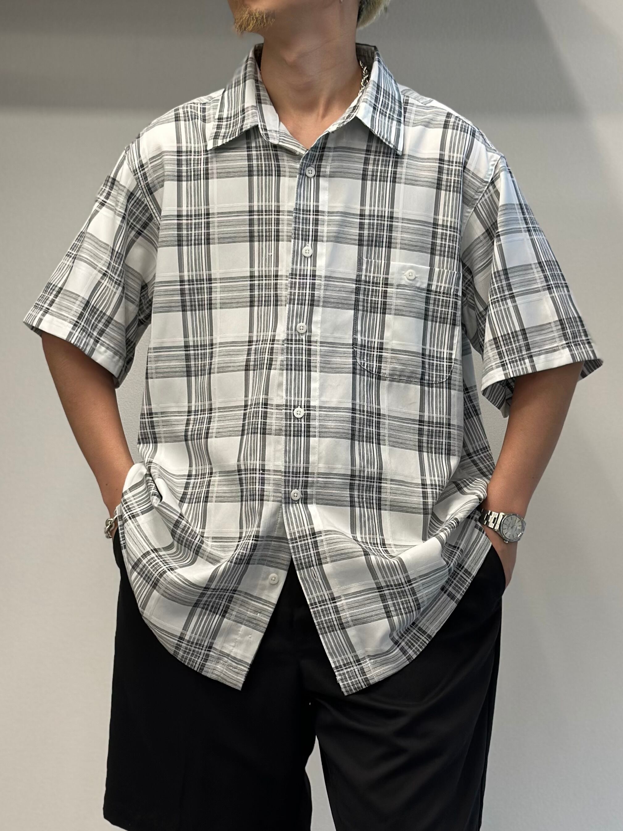00s HAGGAR Luxury Microfiber Poly Check S/S Shirt