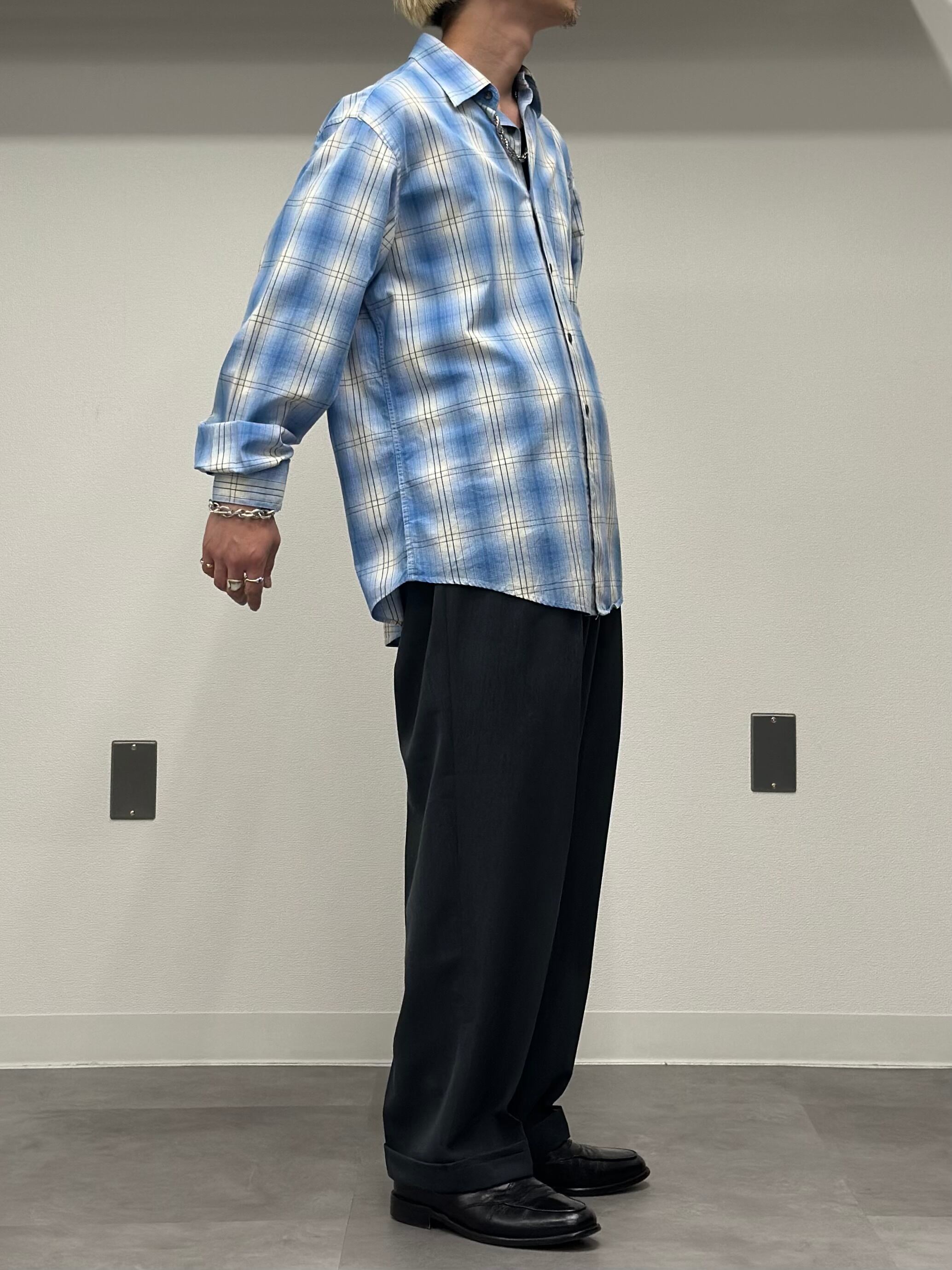 レギュラーカラーでアメカジ過ぎず、スラックスでもデニムでも様々なボトムスと合わせられる綺麗めな1着でございます。