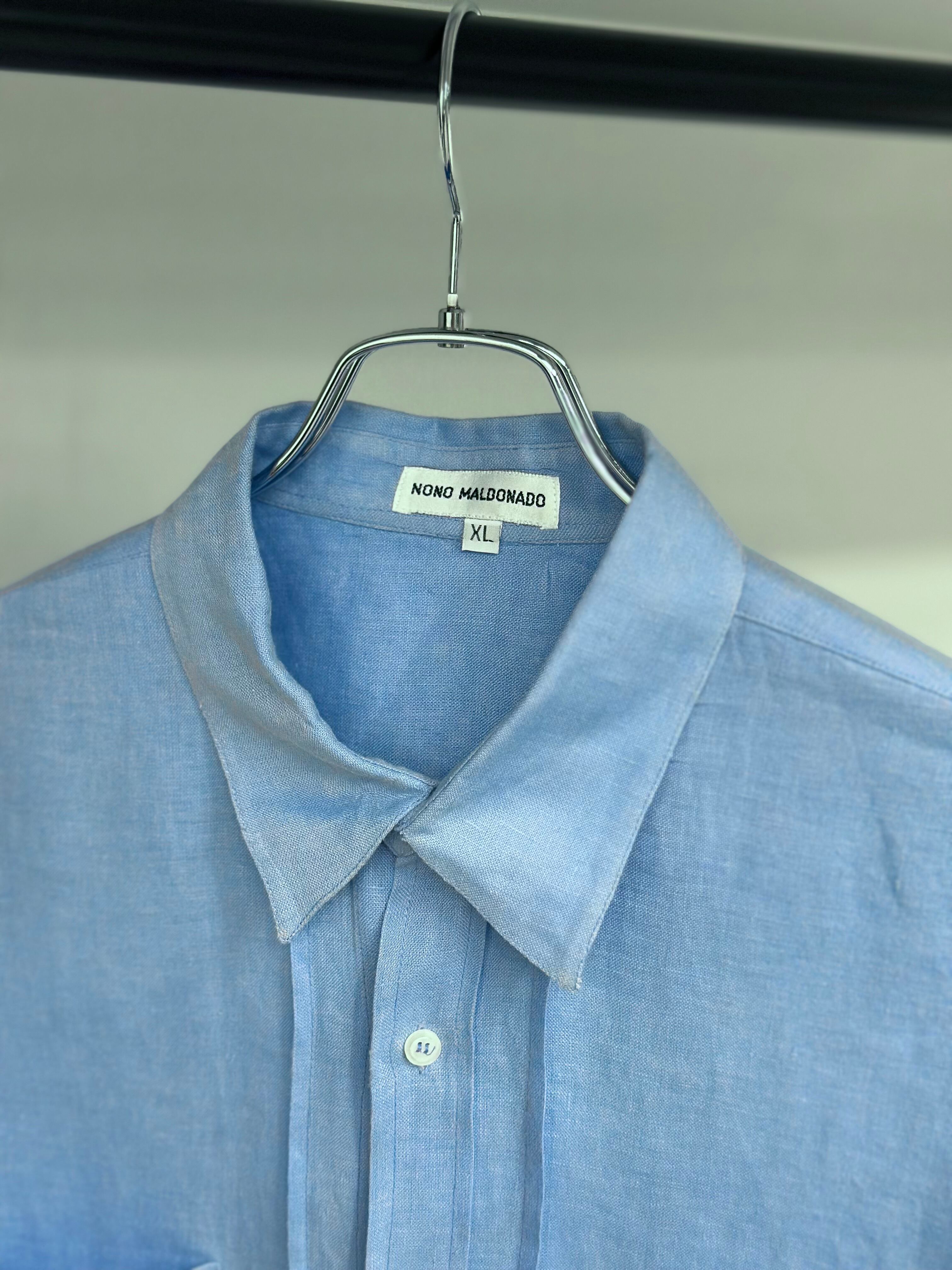 90s NONO MALDOMADO Linen Pleated L/S Shirt Made in USA