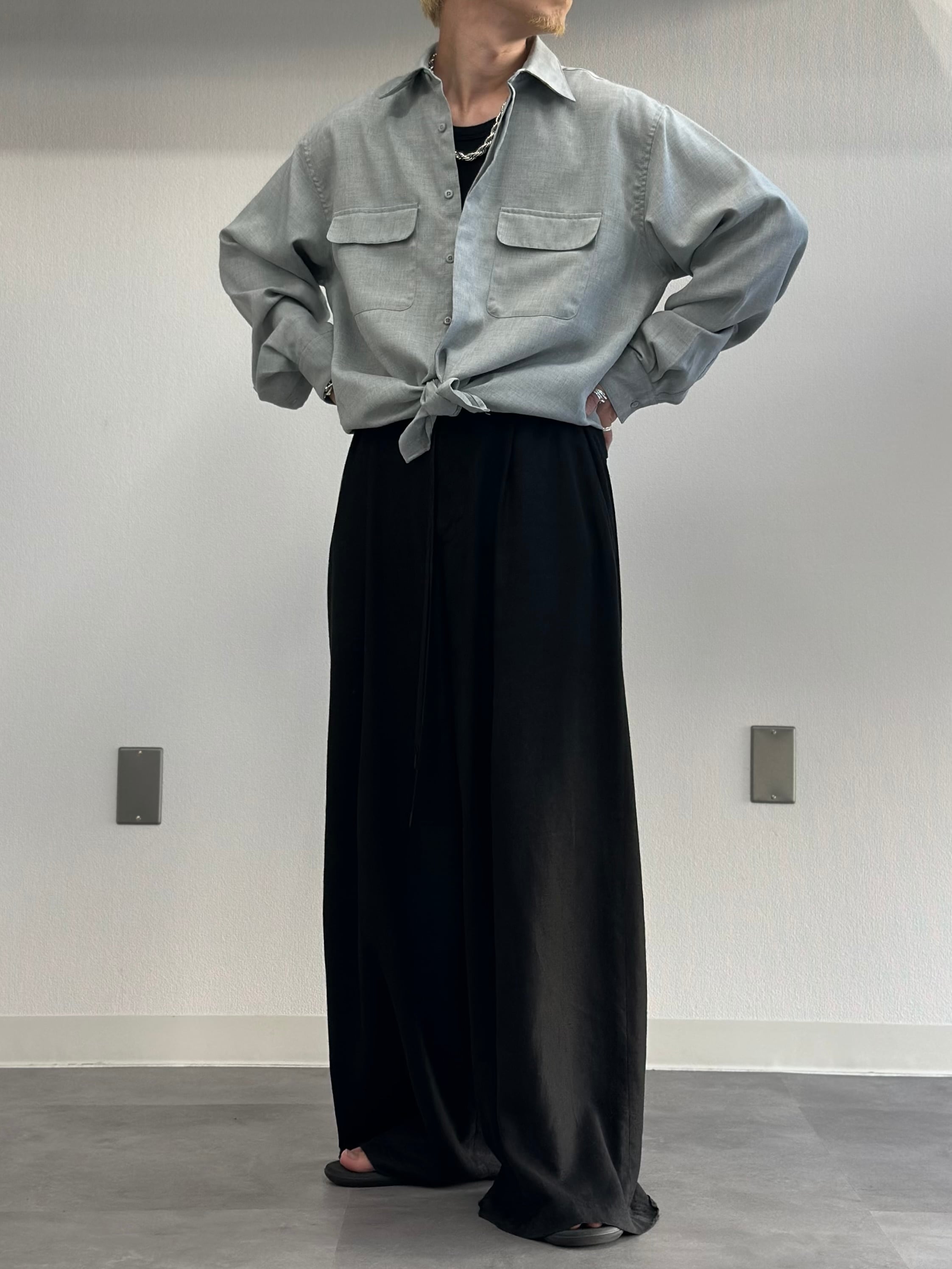 フロントは比翼でボタンが見えないソリッドなルックス。