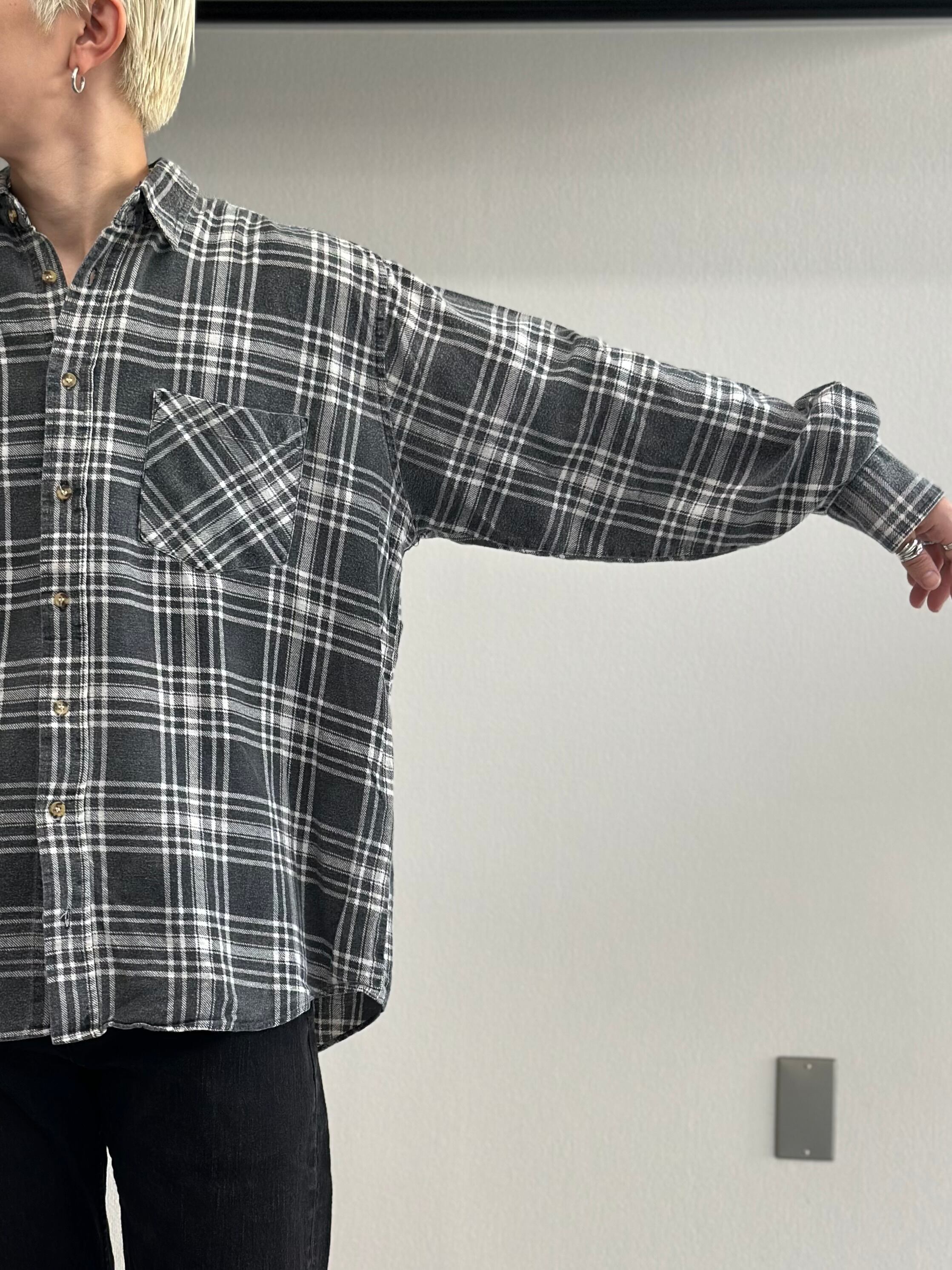 90s-00s WOODEN HUT WORKERS Print Flannel L/S Shirt