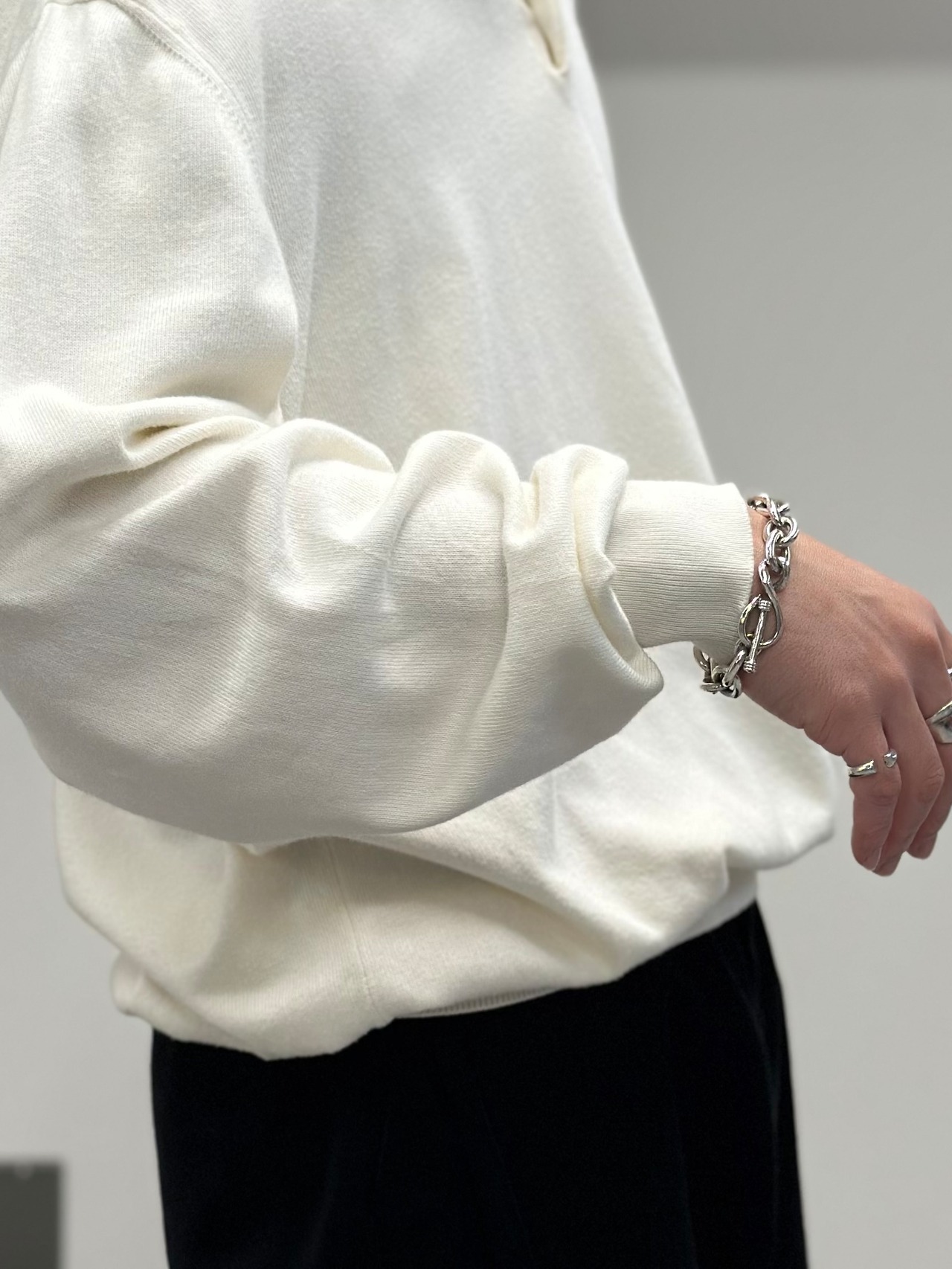 袖・裾リブ共にギュンギュンで裾はお好みの位置で着てください。