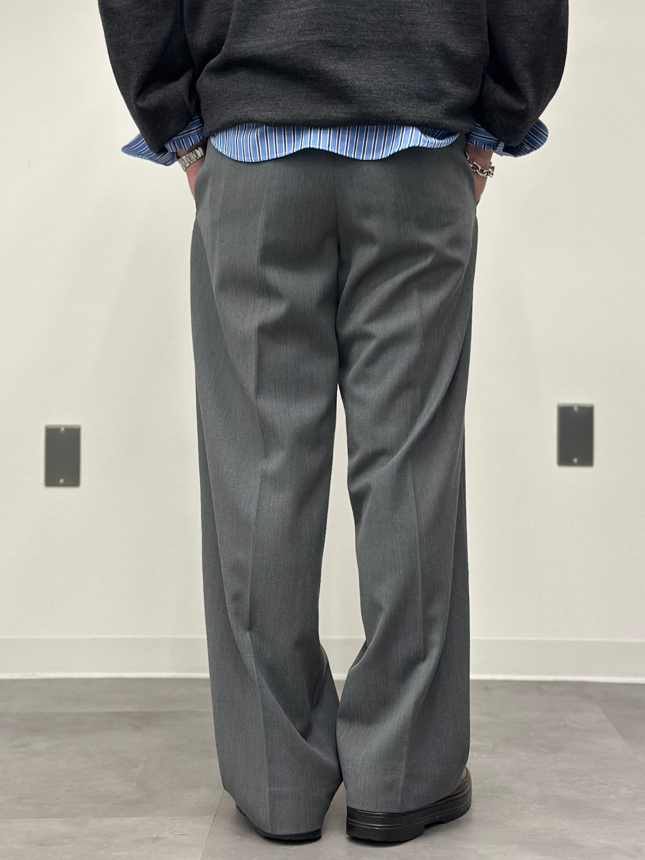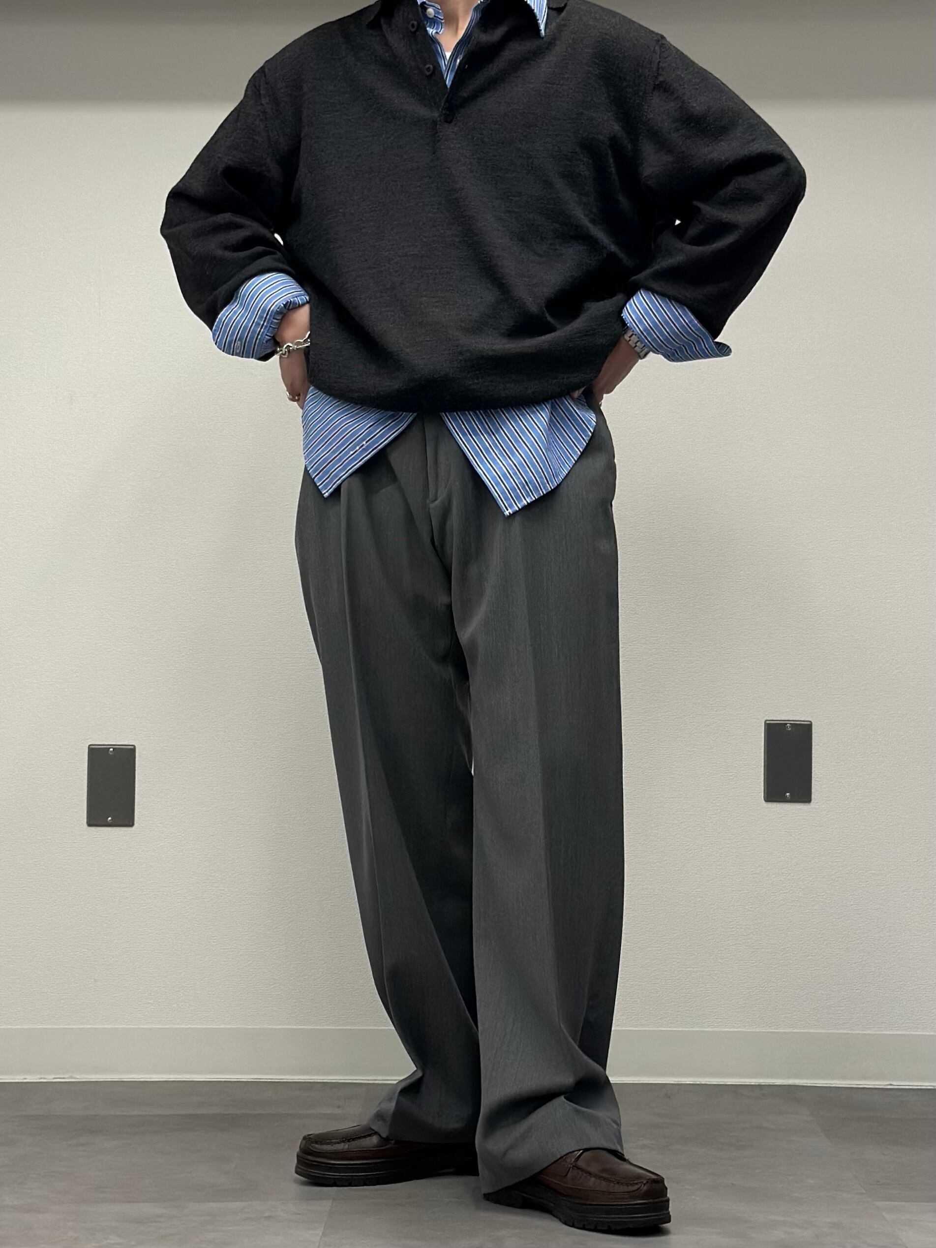 ノータックでウエスト・腿周りはスッキリとしていて、そのままズドンと落ちるワイドストレートシルエット。