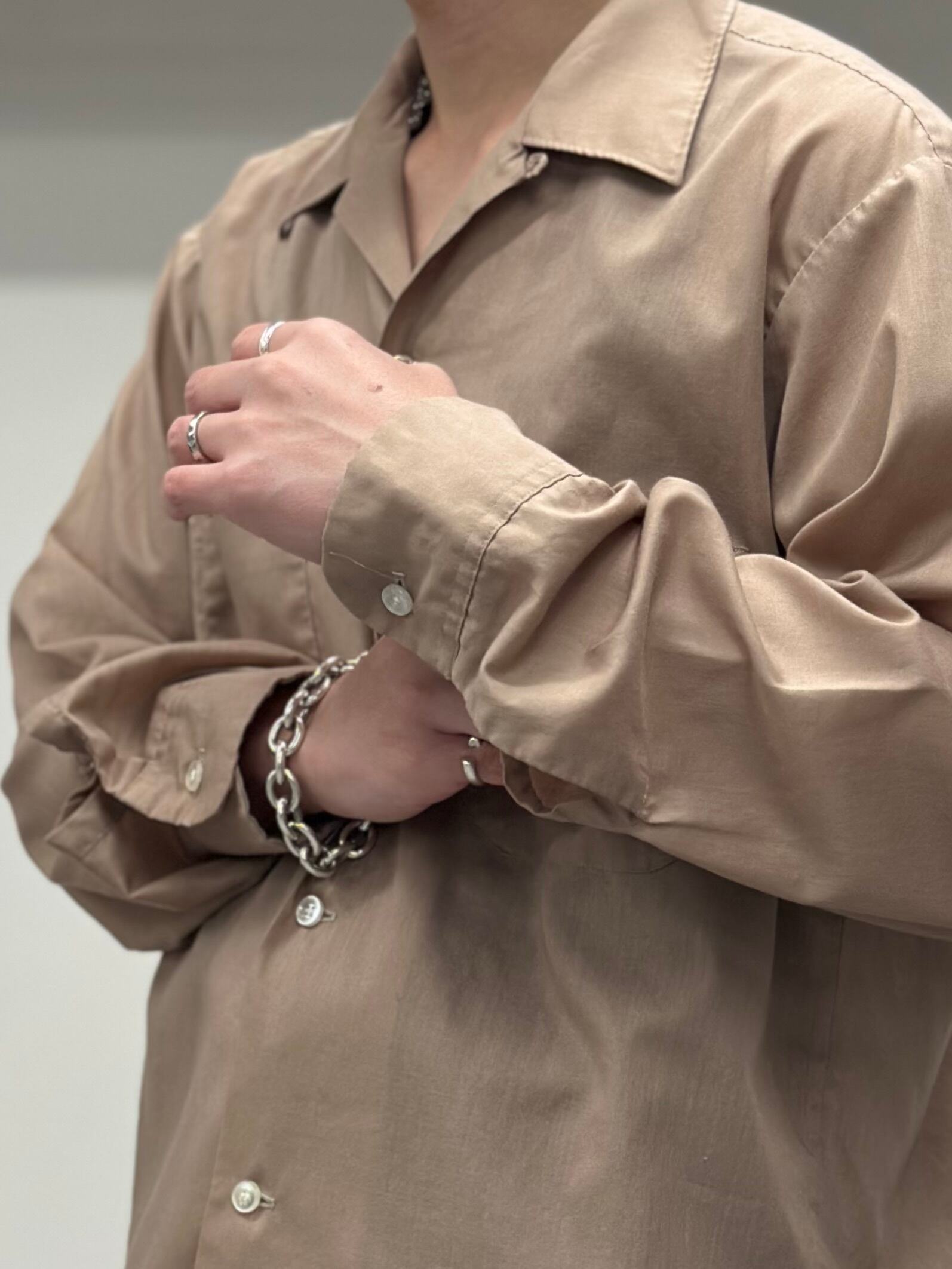 襟はループ留めのオープンカラー。