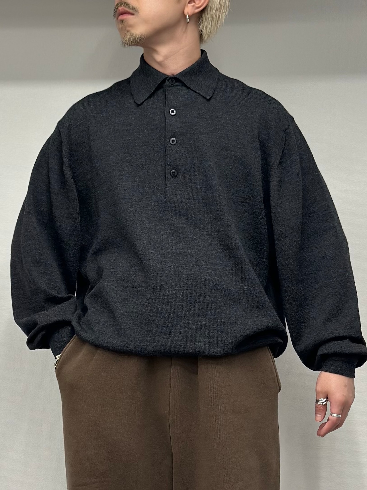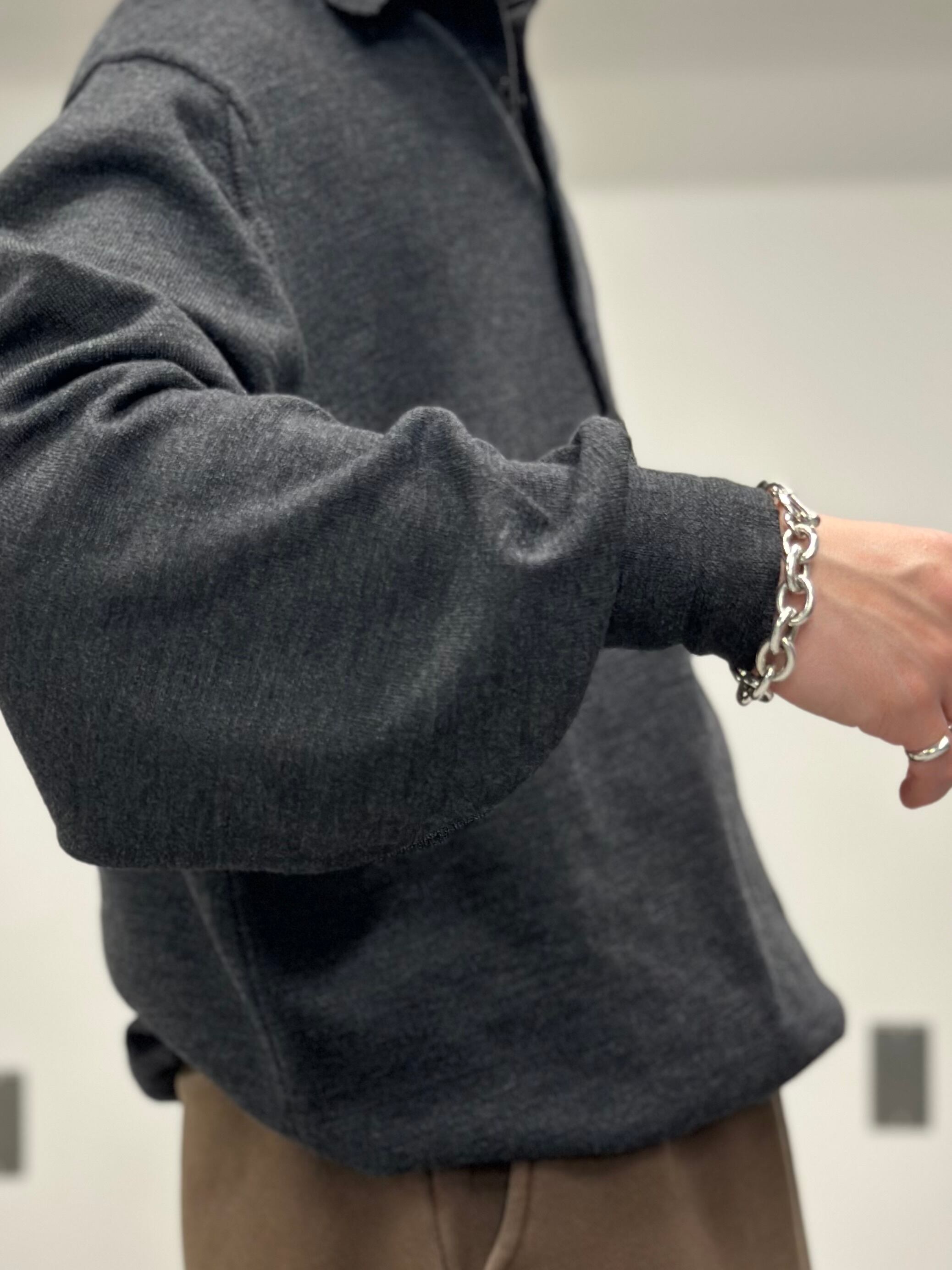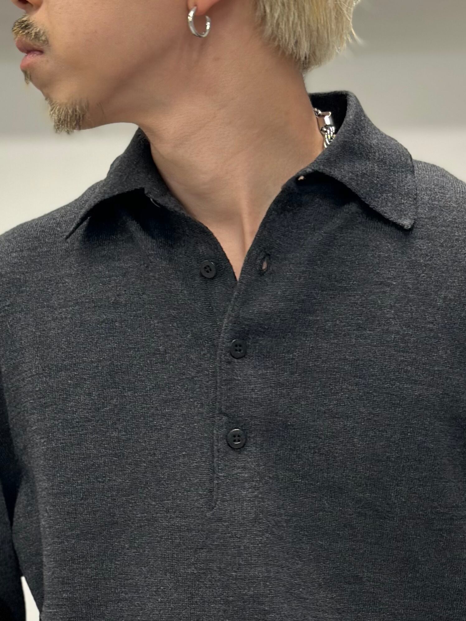 こちらは大人の漢のチャコールグレーカラーのニットポロシャツ。