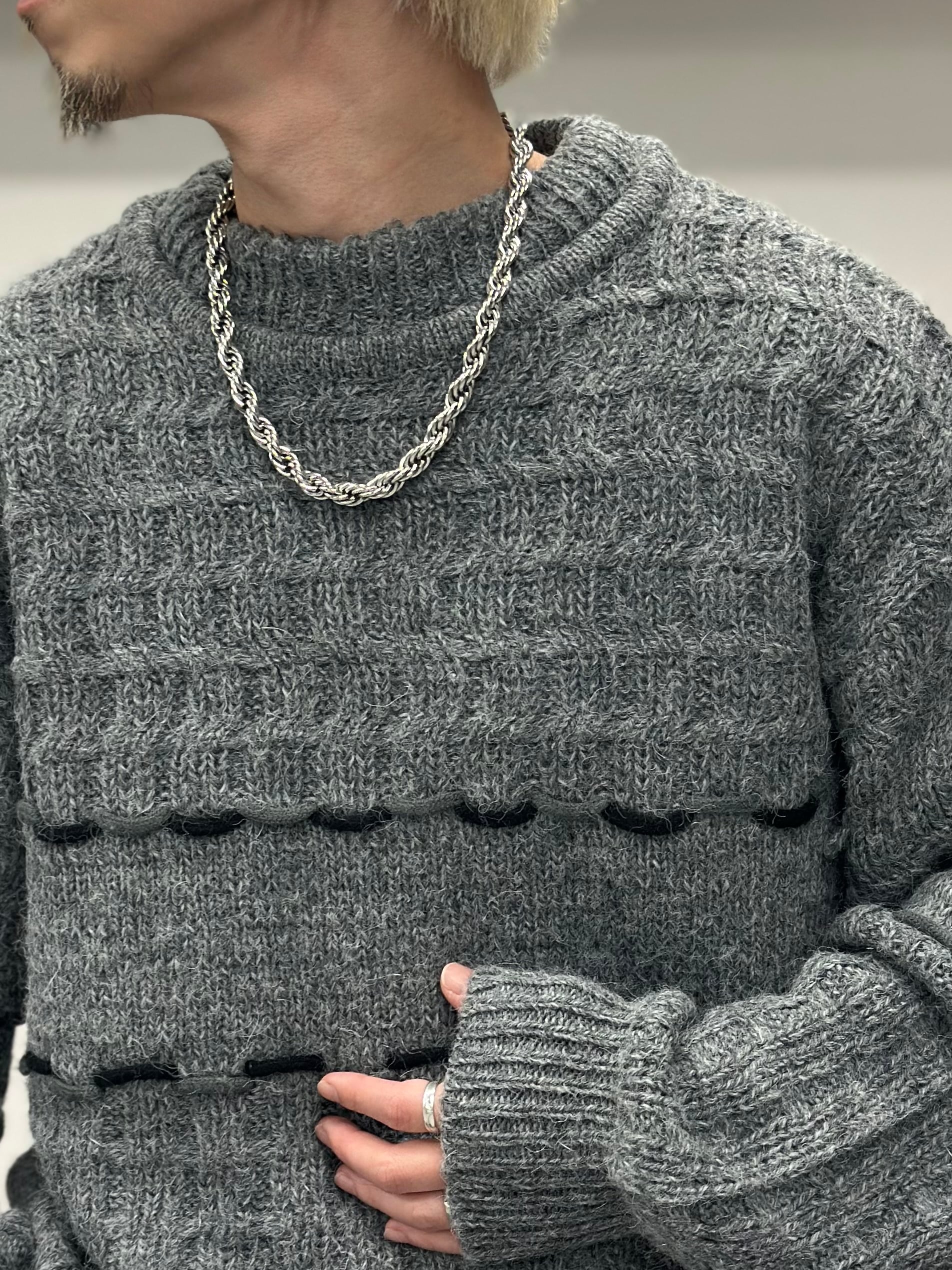 でこちらはアクリルメインの少し毛足もある表情のニット。