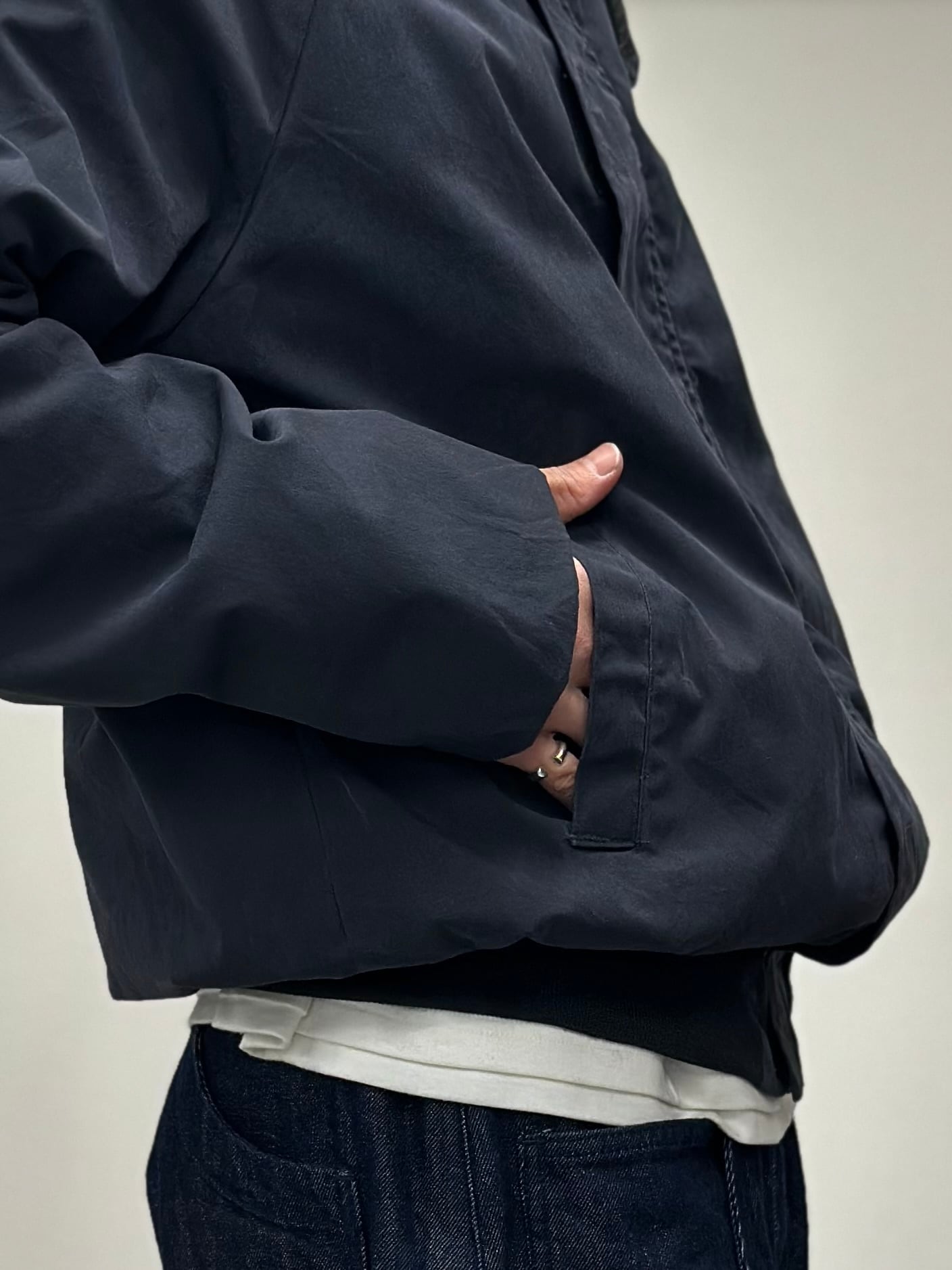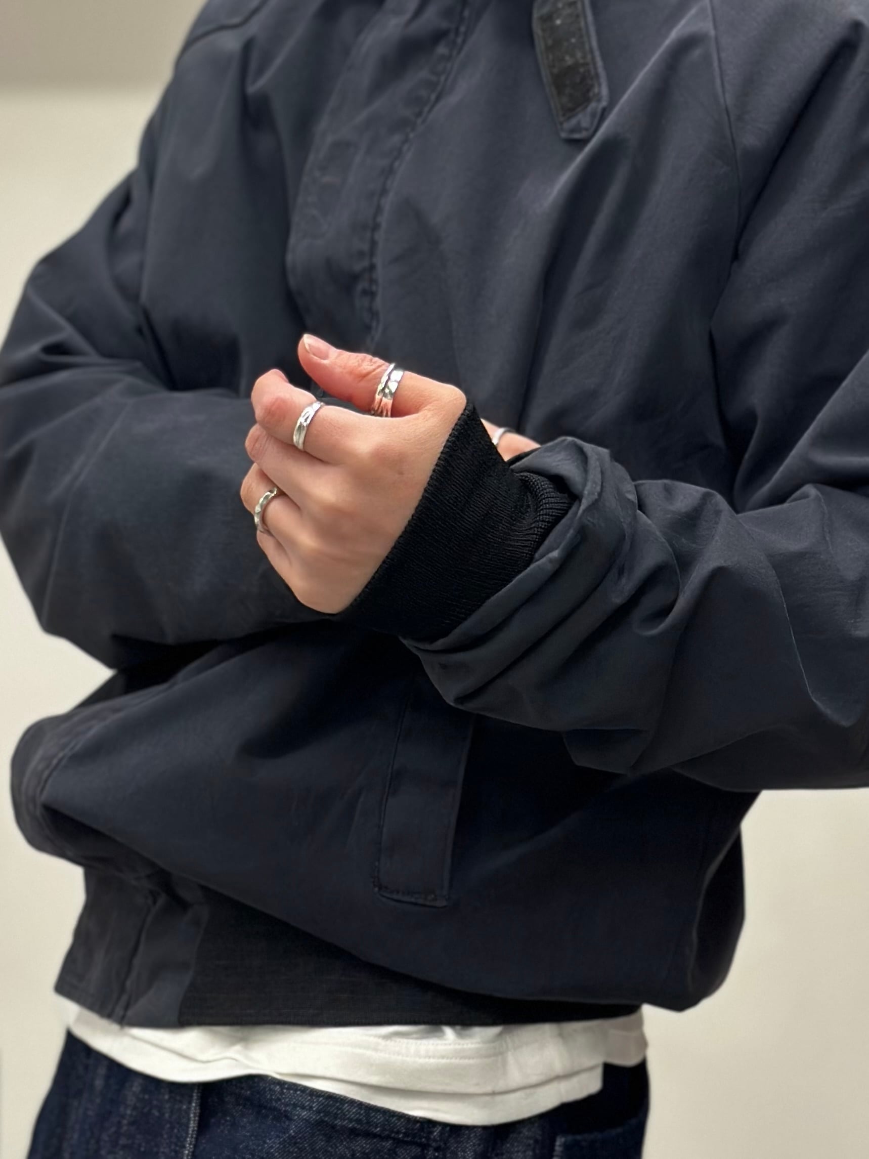 フロントはジップ+ベルクロ開閉の比翼仕様で袖の内側にリブが付いてるミリタリーらしからぬソリッドなデザイン。