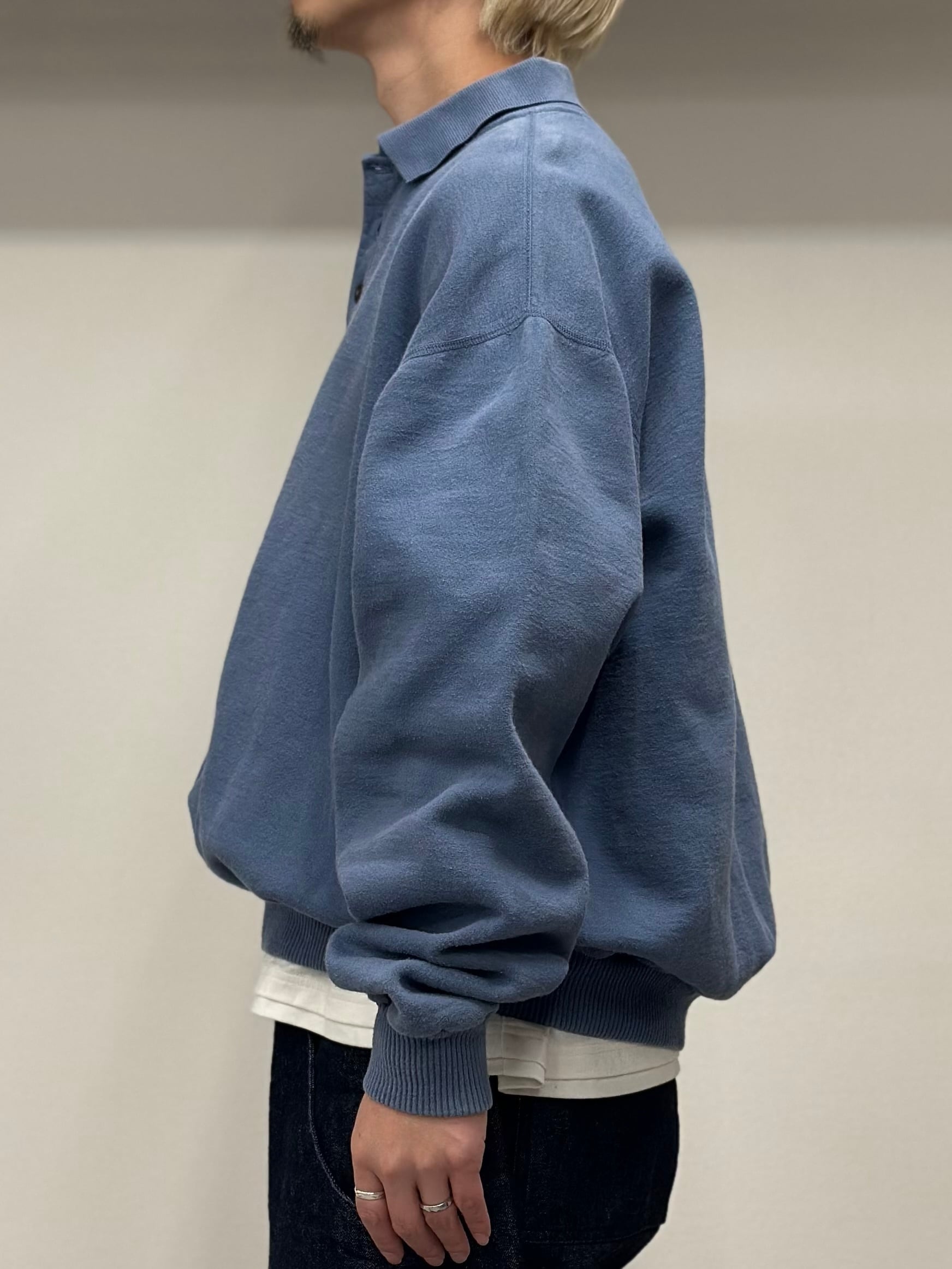 ピグメントダイが施されたダスティーブルー。