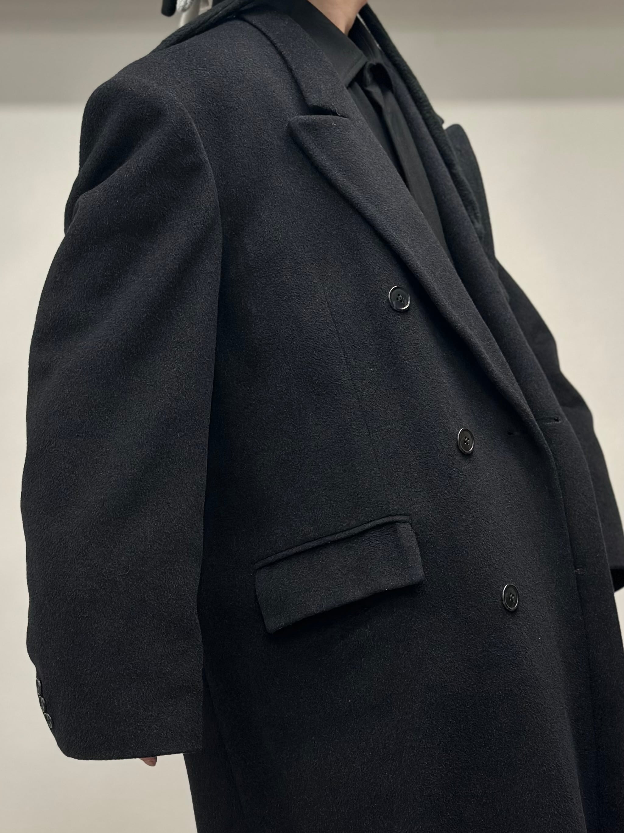 ラグランスリーブの落ちるようなコートも良いんですけど、このダブルはセットインスリーブでボクシーなギャング感のある雰囲気がとてもカッコいいと思ってます。