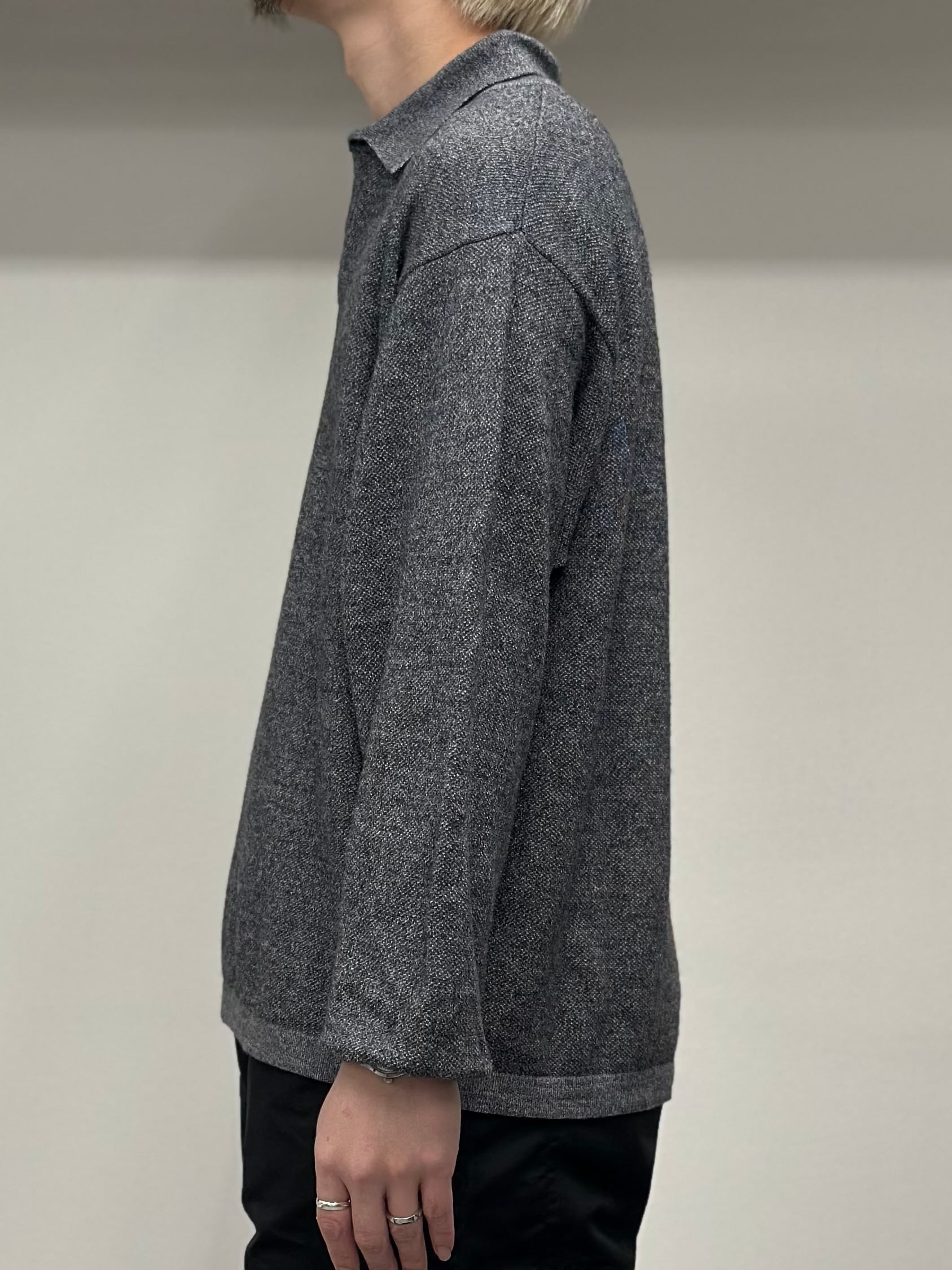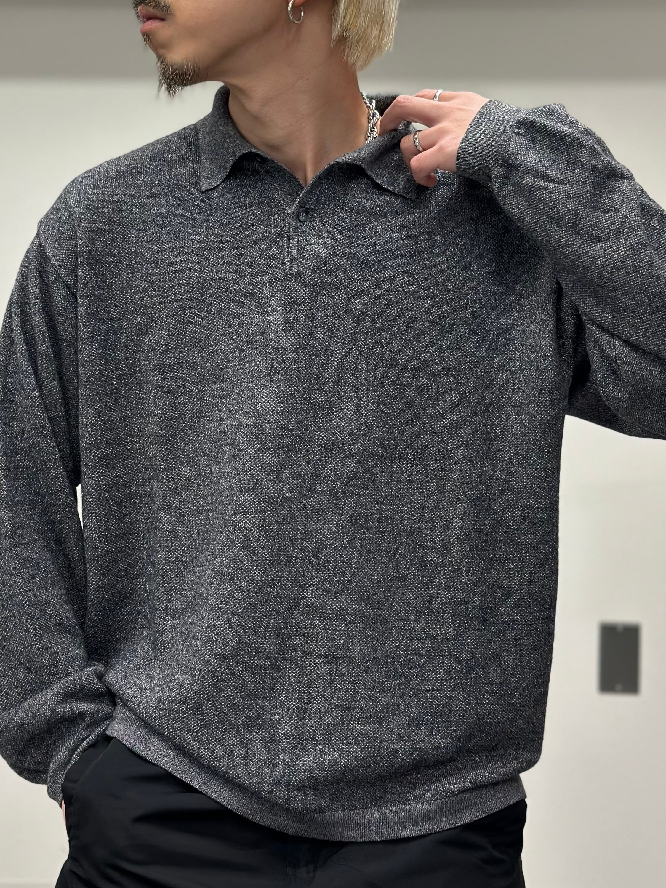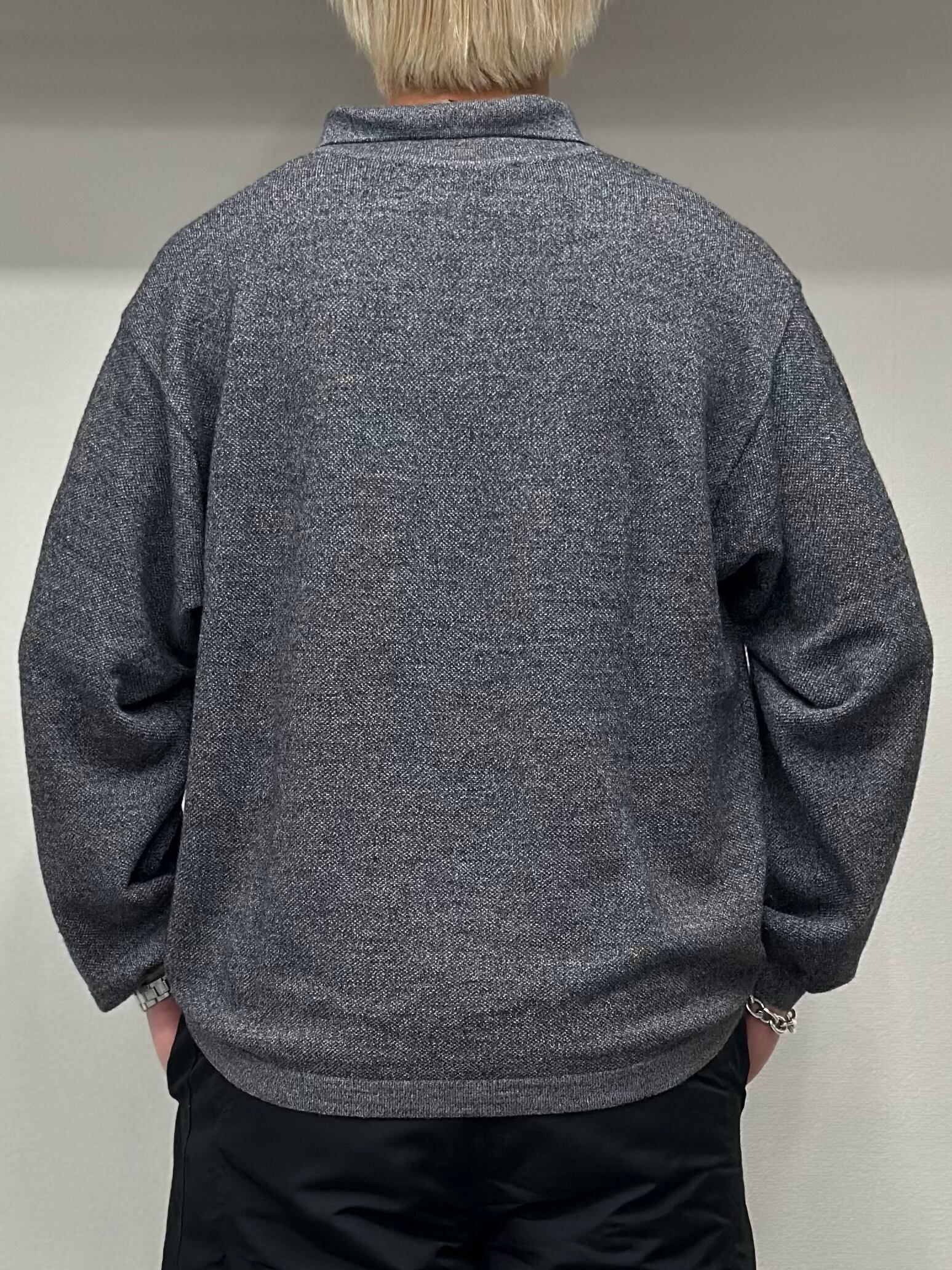 00s PRONT UOMO Rayon-Wool-Acrylic L/S Knit Polo Shirt Made in ITALY