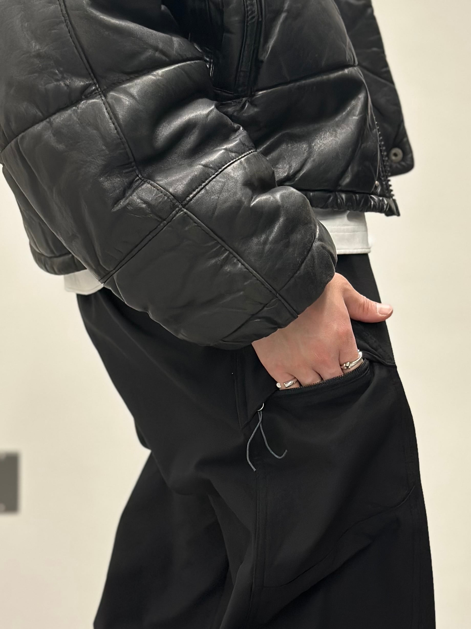 トップス・アウターも様々な素材と馴染みやすく普段のコーディネートの変化球として取り入れやすい1着です。
