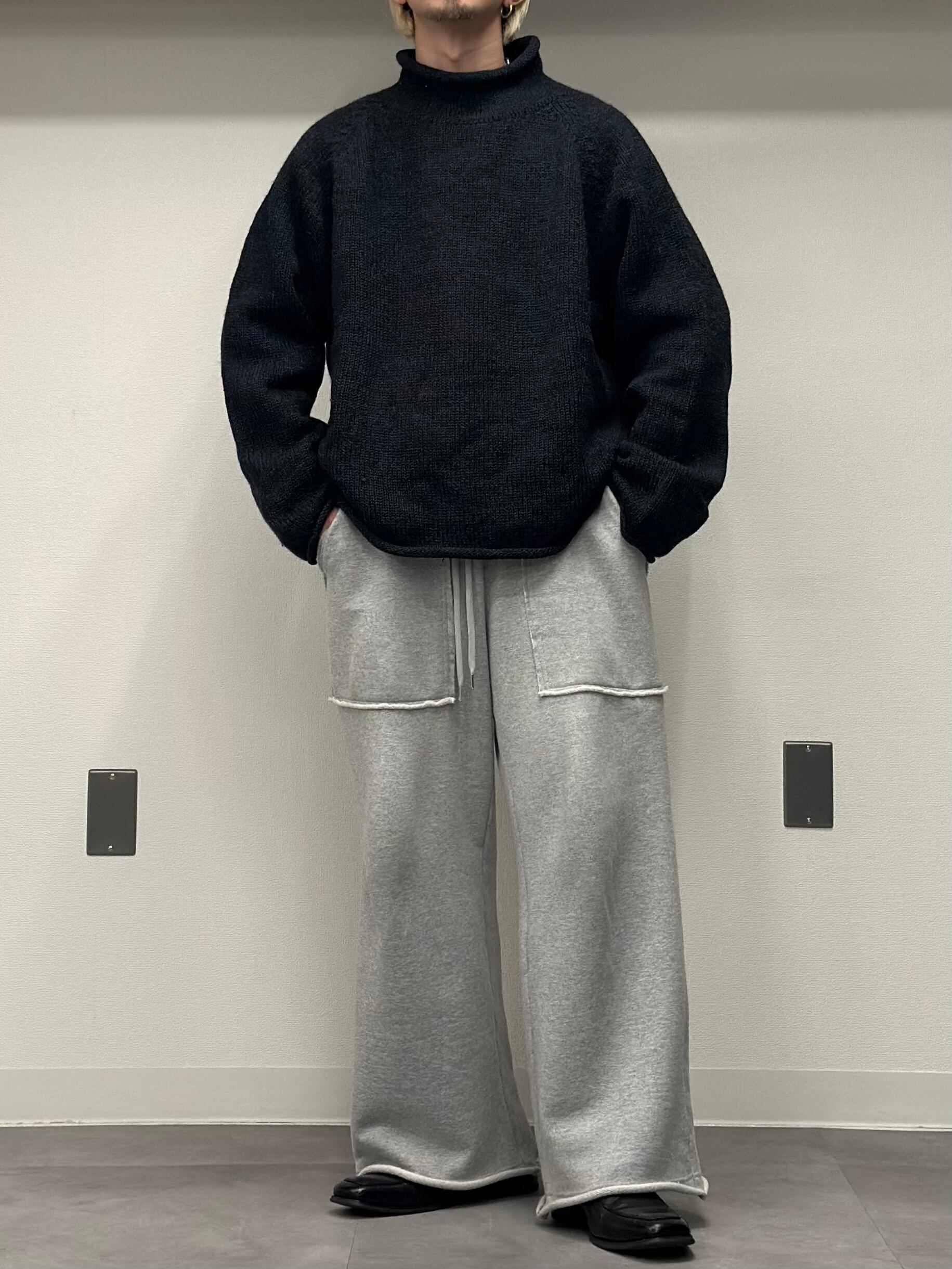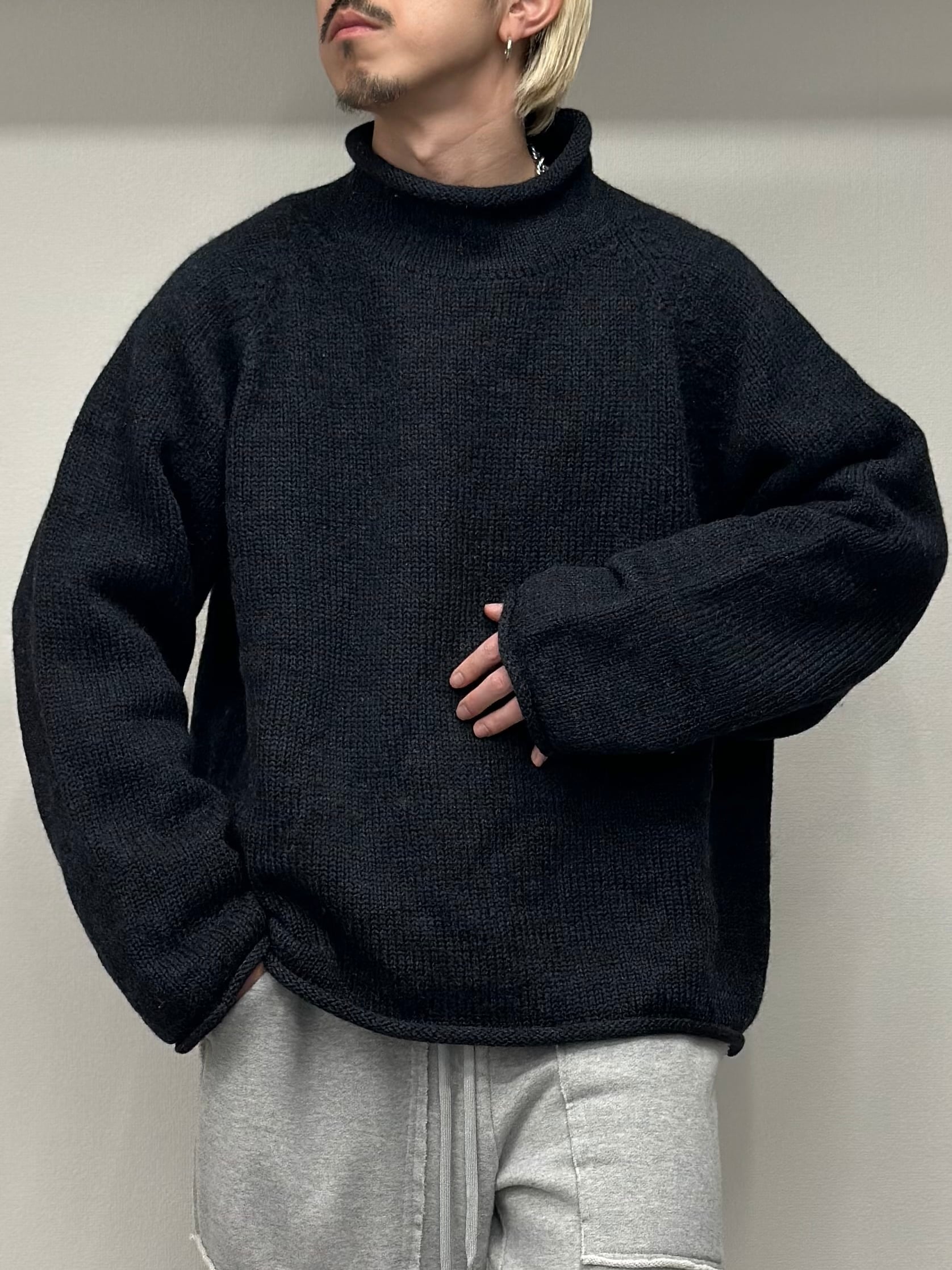 モックネックやタートルネックとは違い首周りは緩いので抵抗がある方にもオススメ。