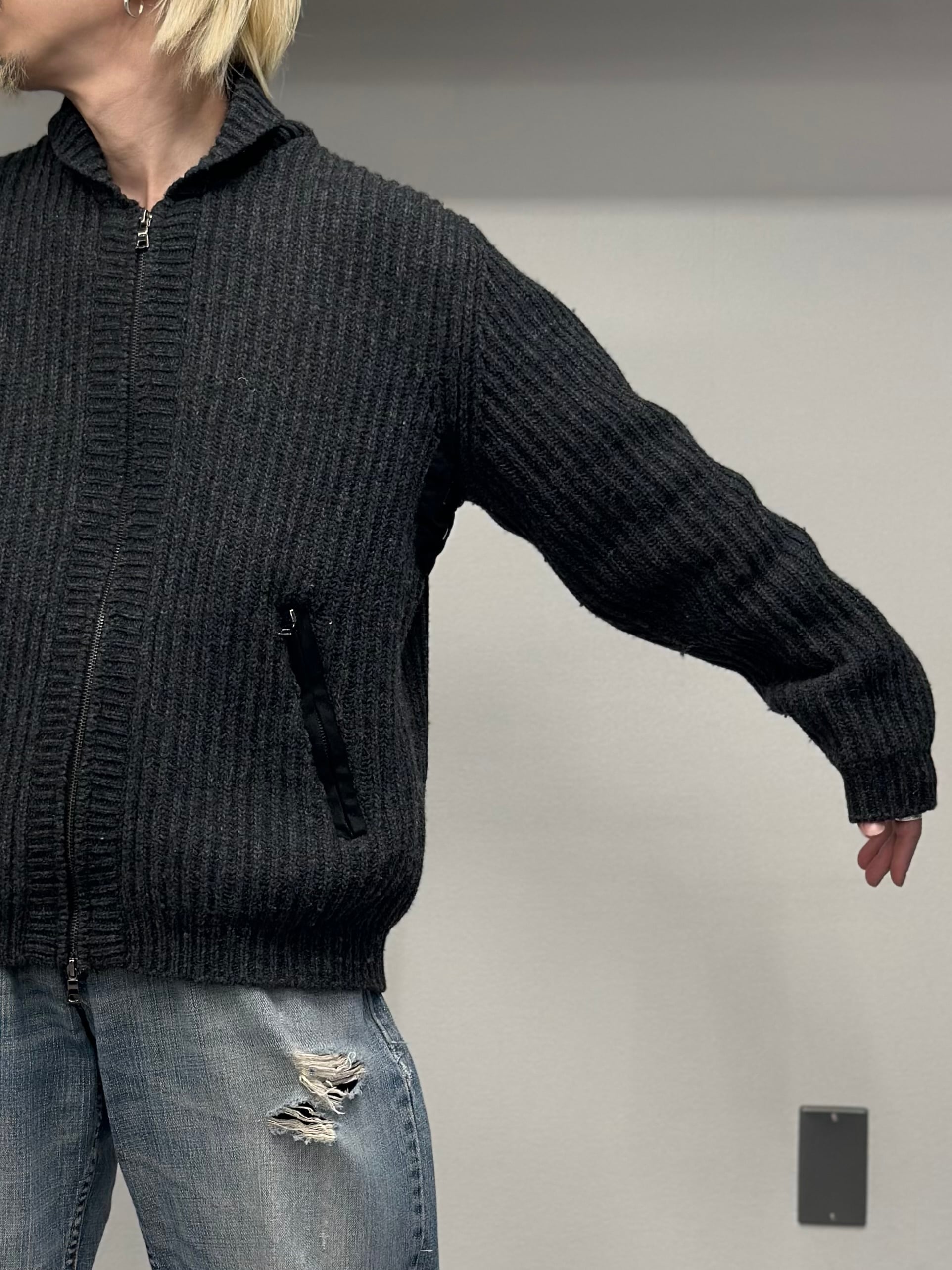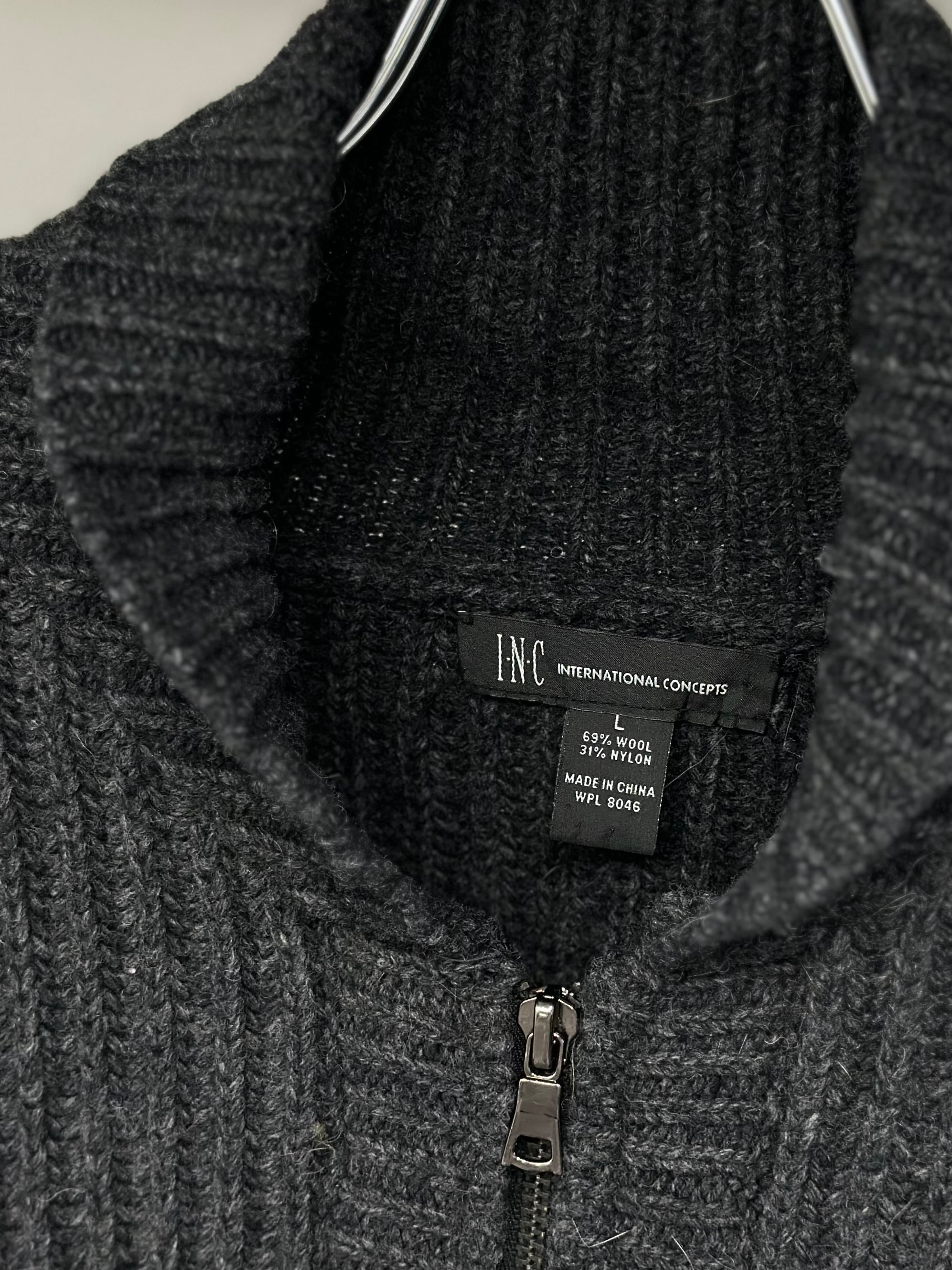 00s INC Wool × Nylon Shawl Collar Zip Up Knit Cardigan