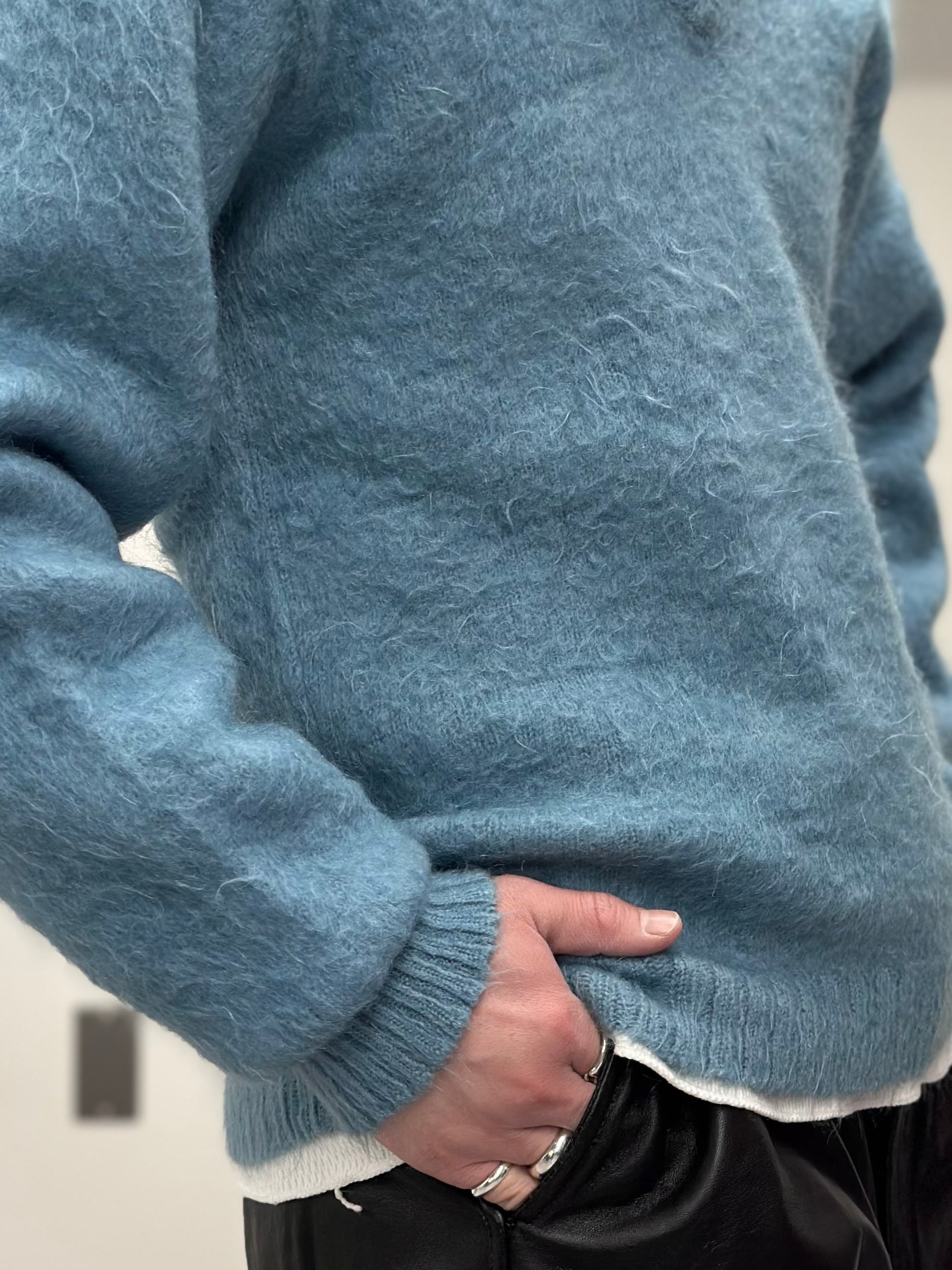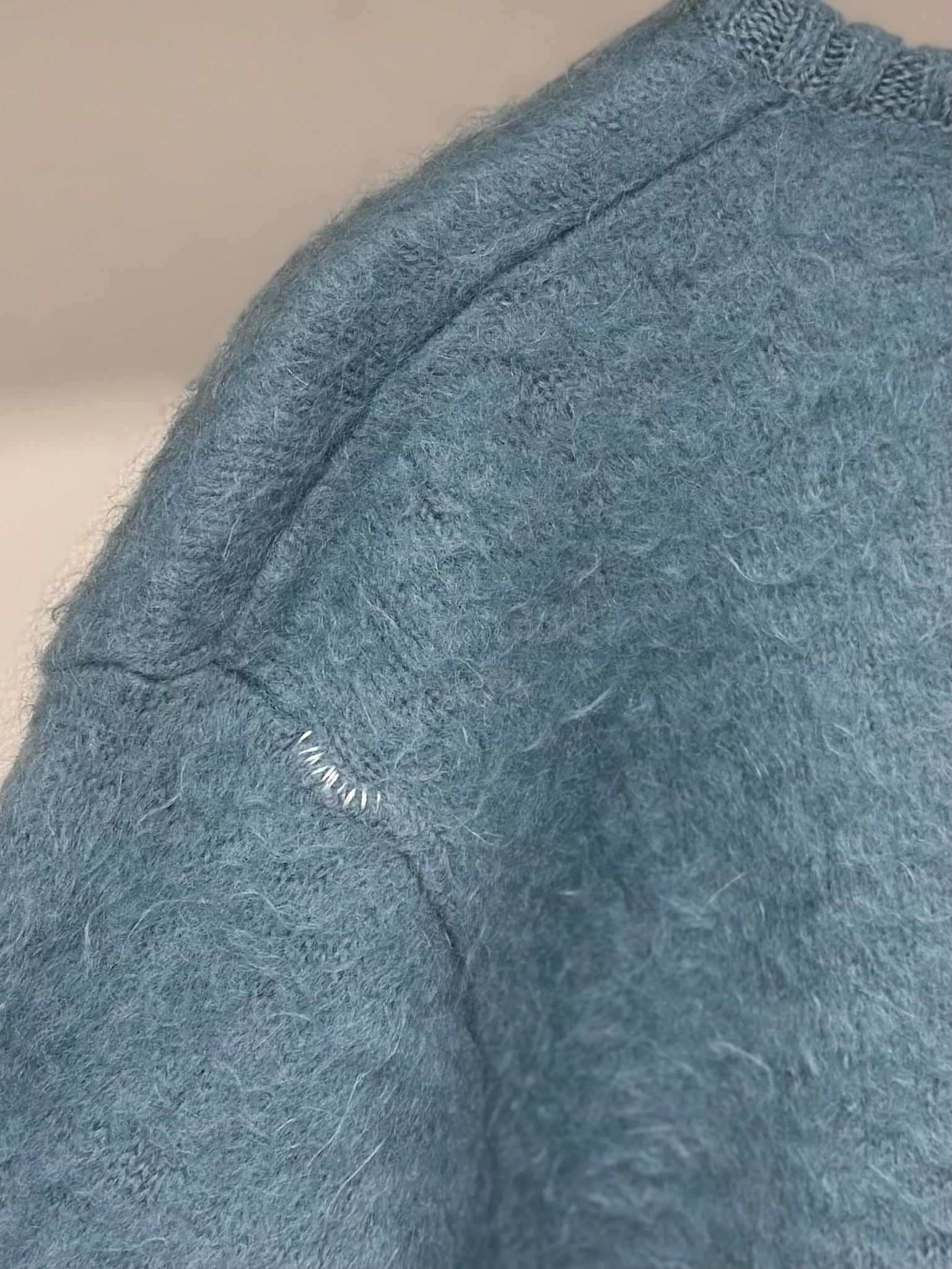 Vネックのモヘアニットでございます。