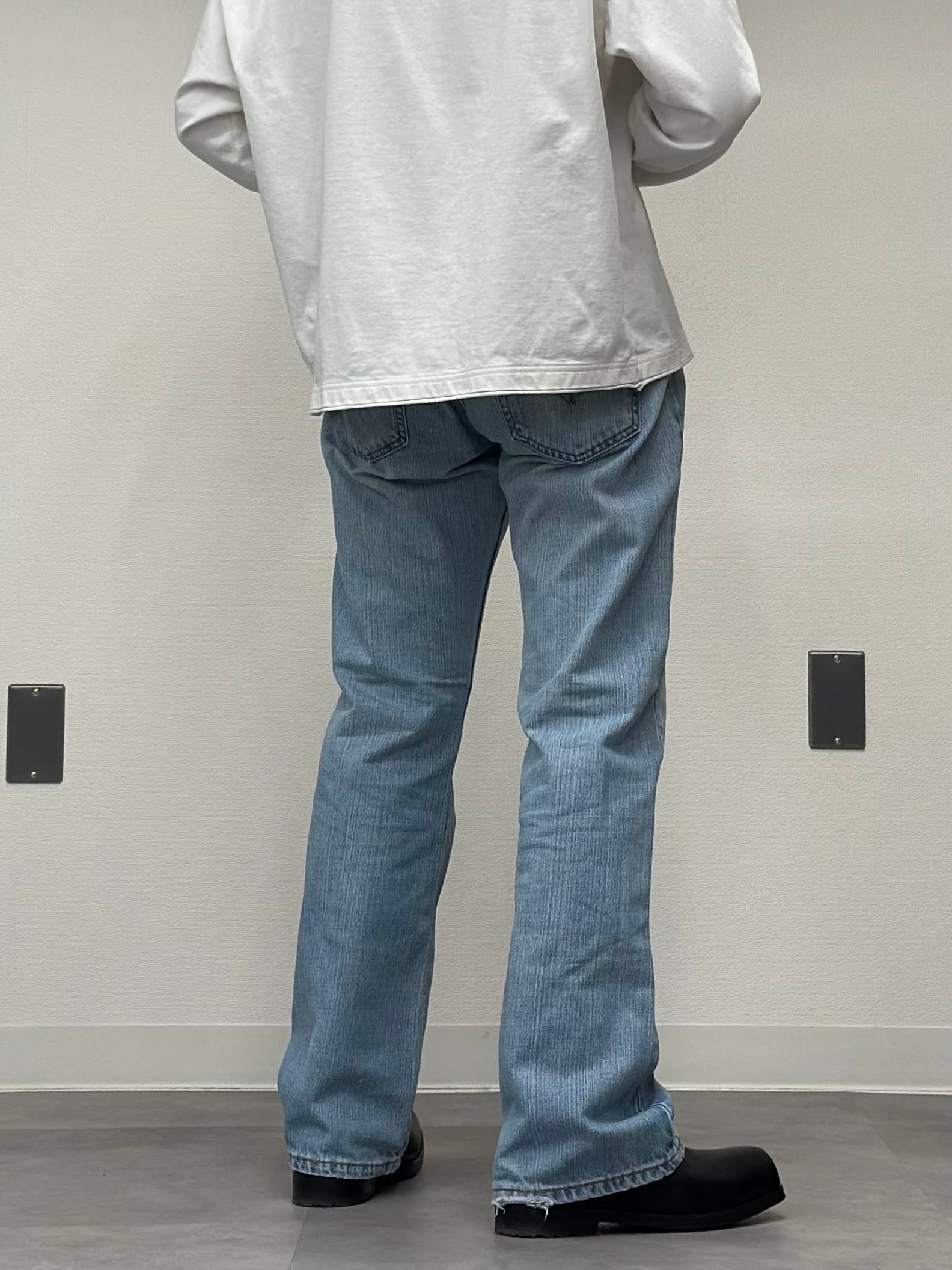 ブーツカットの名の通り、ブーツに合わせてもらっても良いですしペタンコのスニーカーとかにも◎。