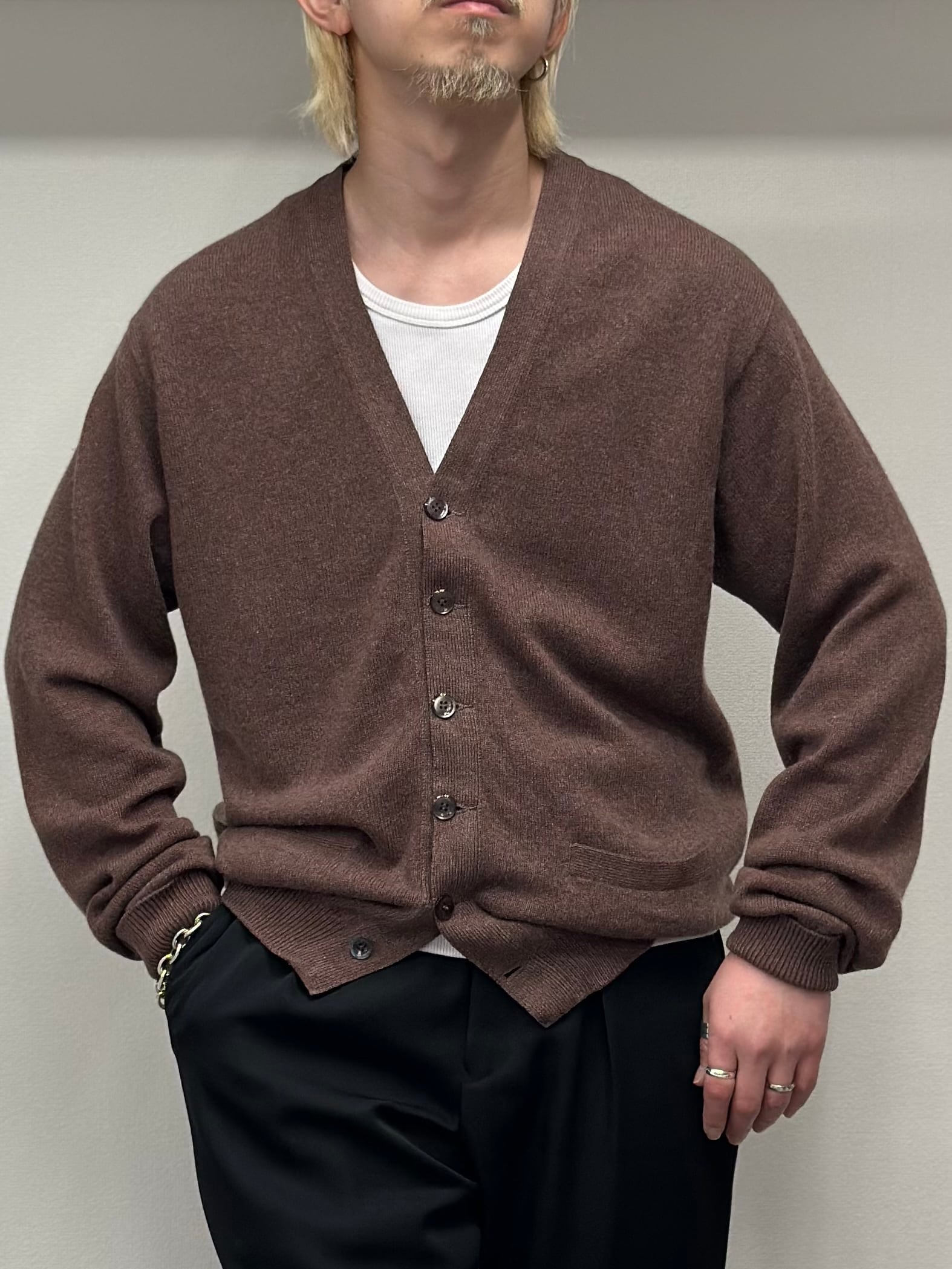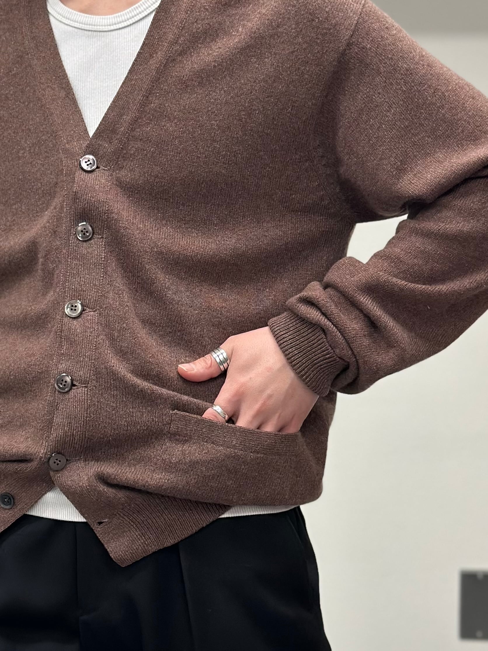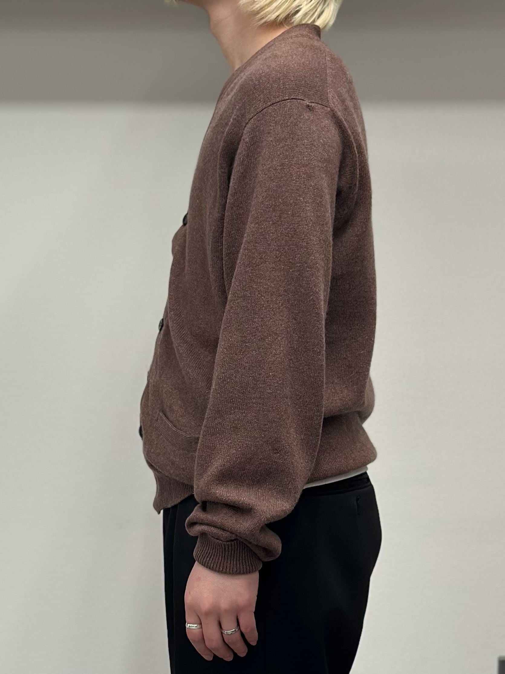 リブはしっかり効いていてボタンを留めると溜まるシルエットです。