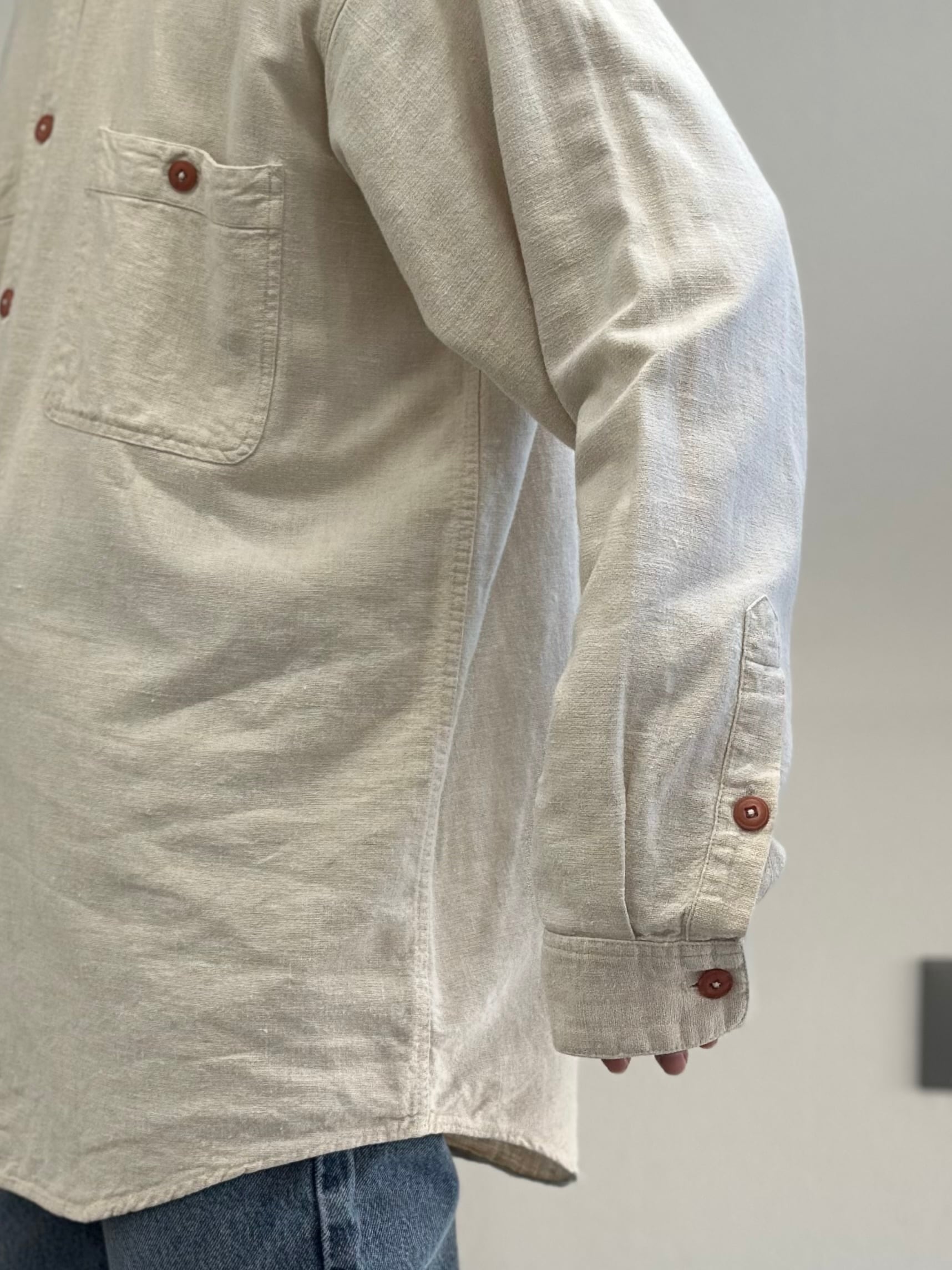 リネンの風合い・揺れ感がありつつもコットン混紡でハリのあるしっかりとした生地感。