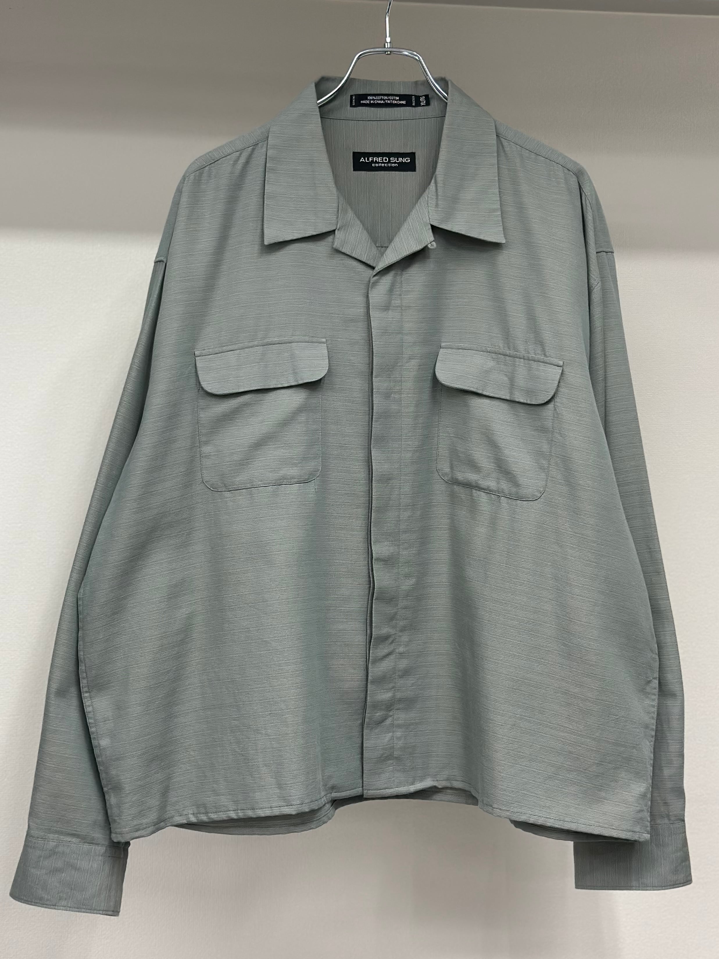 00s ALFRED SUNG Fly Front Cotton Open Collar L/S Shirt