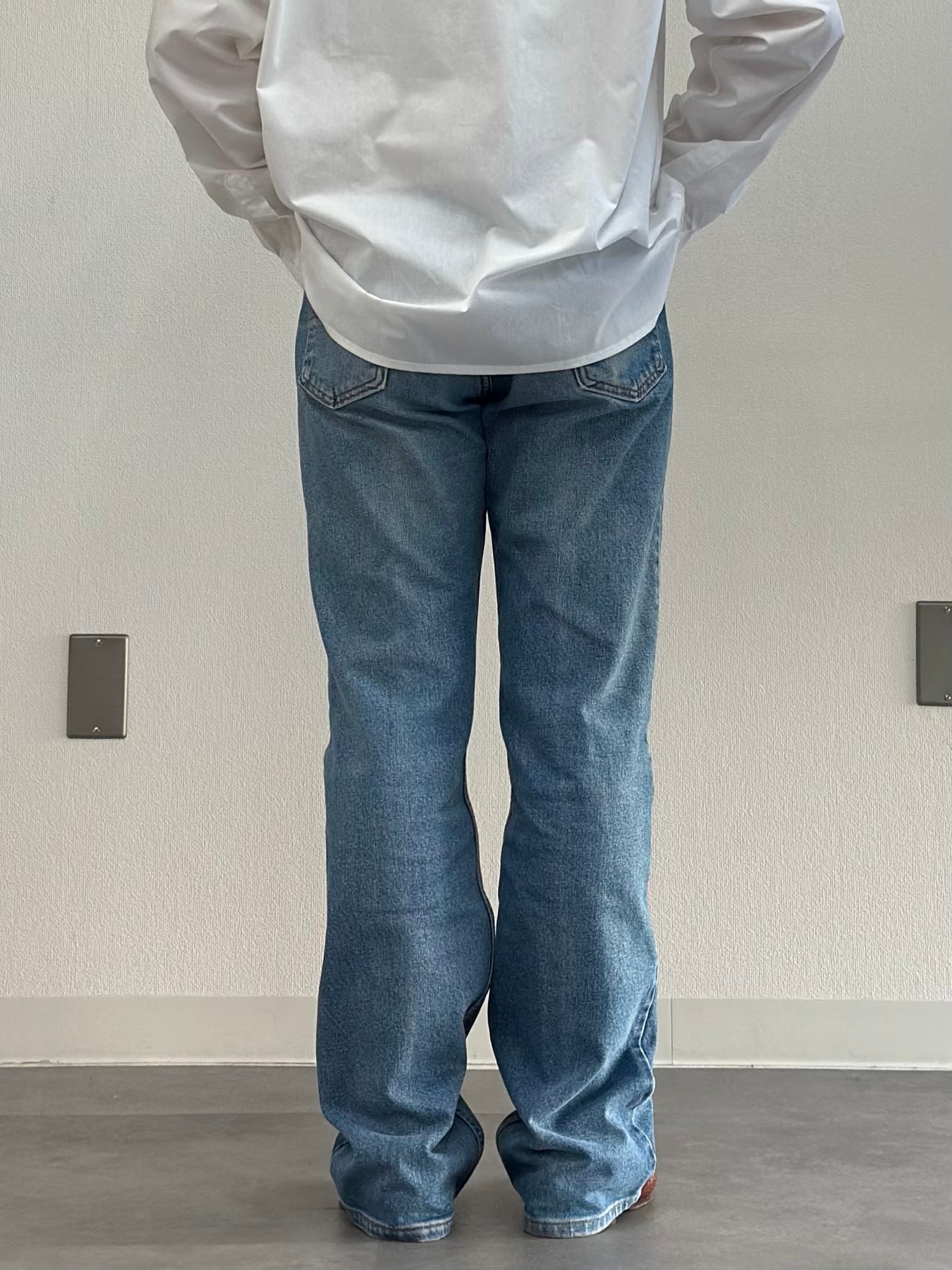 コットン100じゃないのにしっかり縦落ちと薄らヒゲも出てとても良い雰囲気の1着です!