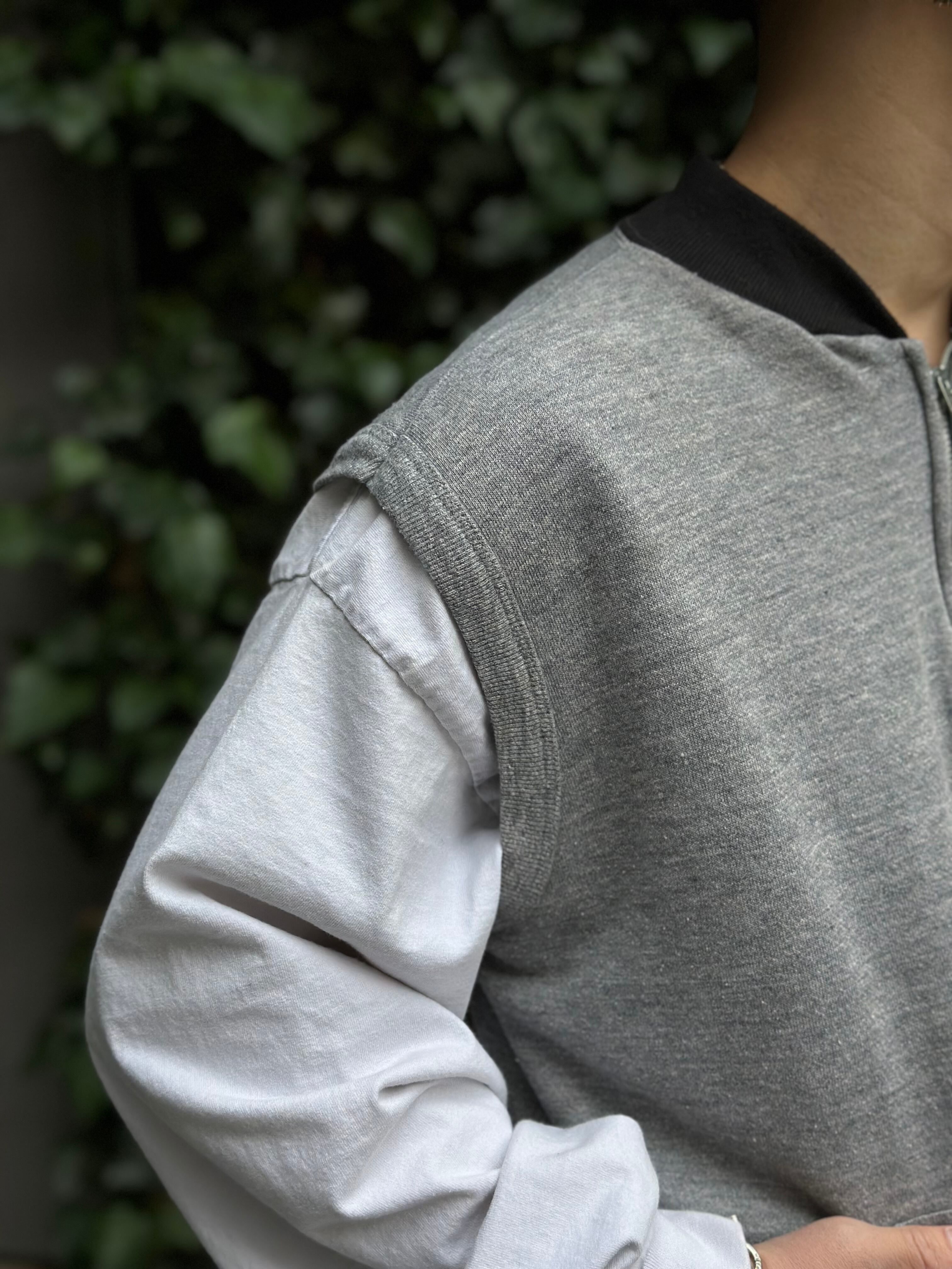 ジップアップのスウェットベスト。