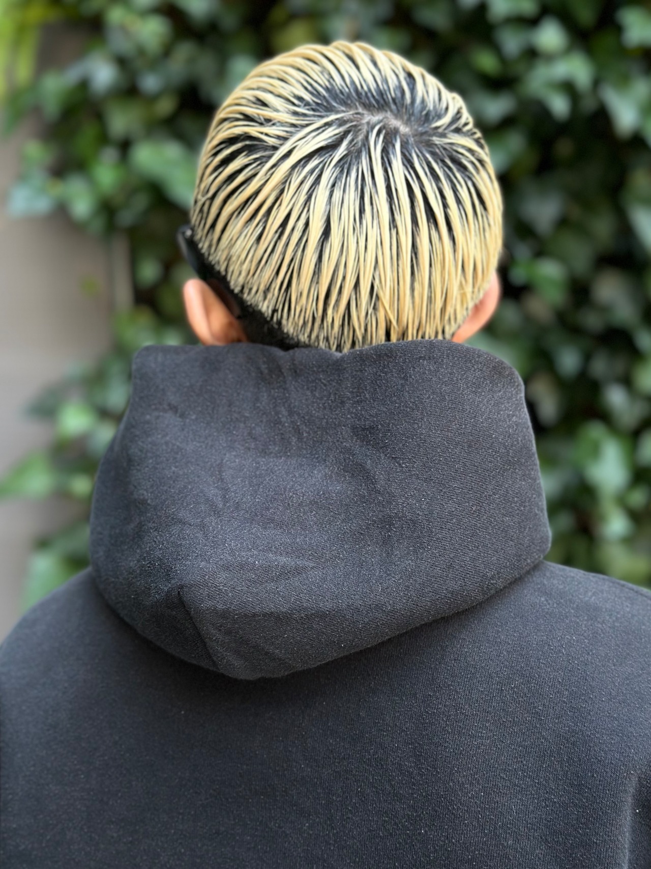 ブラックでフーディー、程よくフェードした雰囲気のある表情。