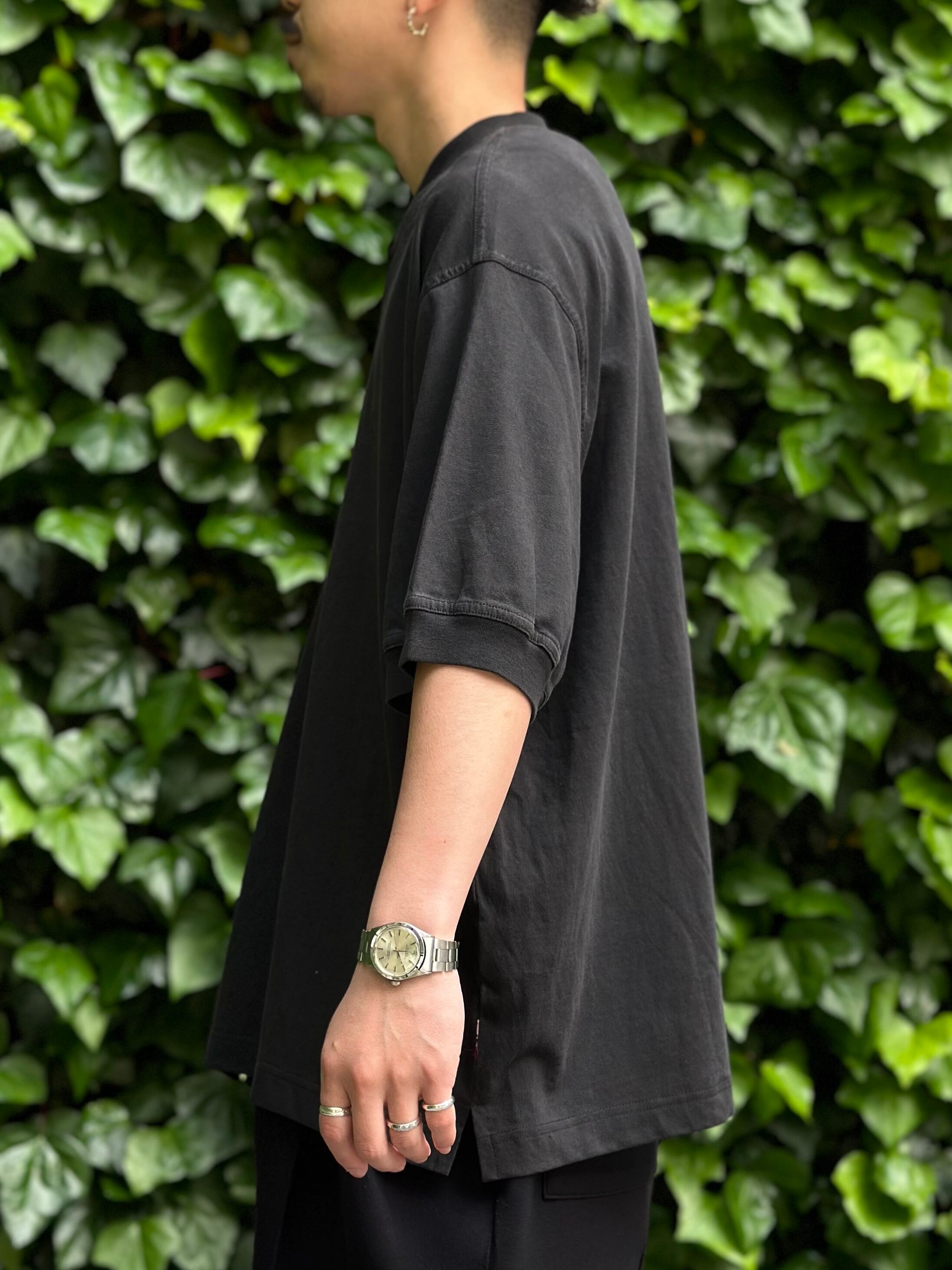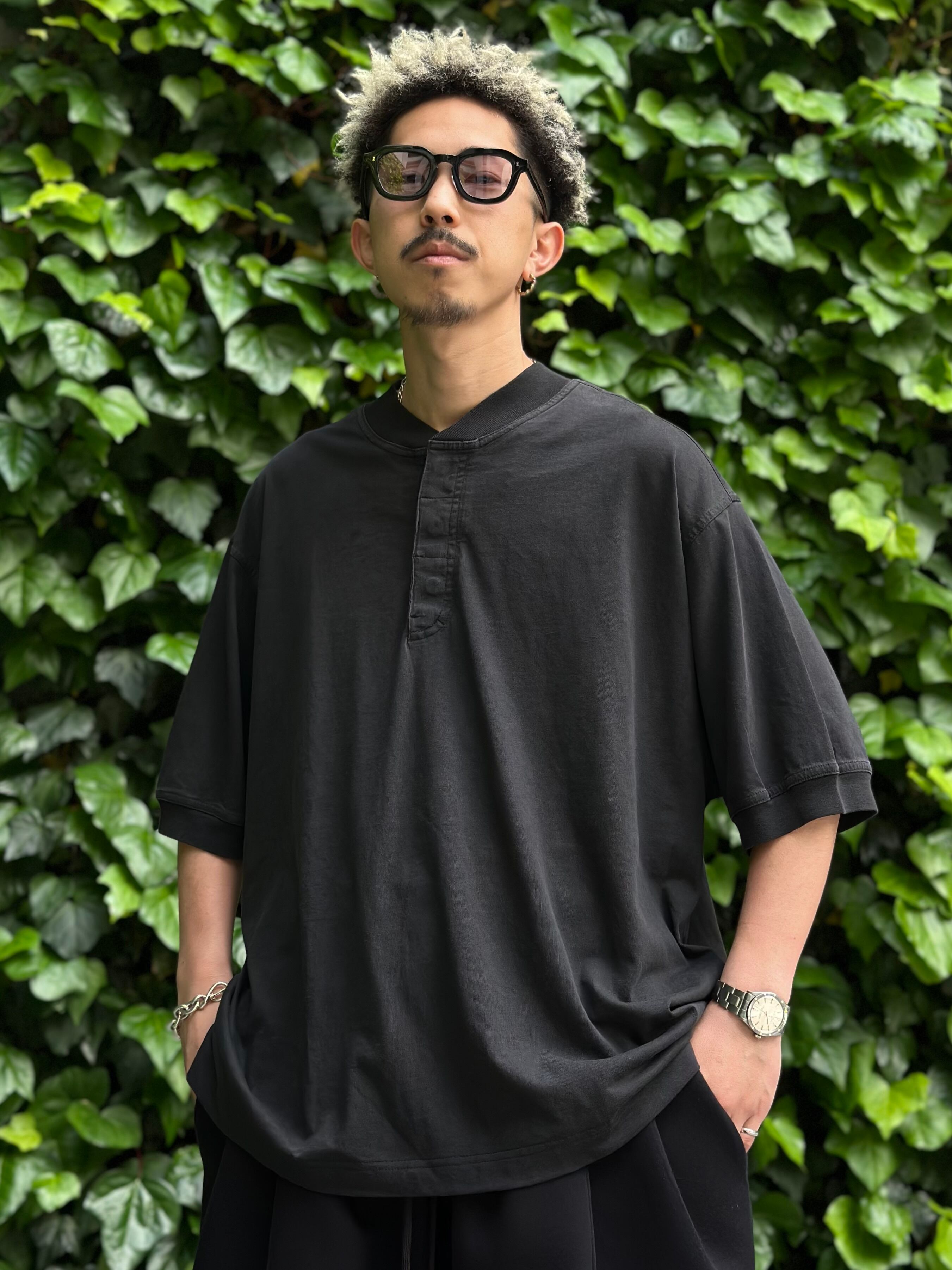 程よくフェードしたブラックボディーにヘンリーネックのボタンは比翼仕様。