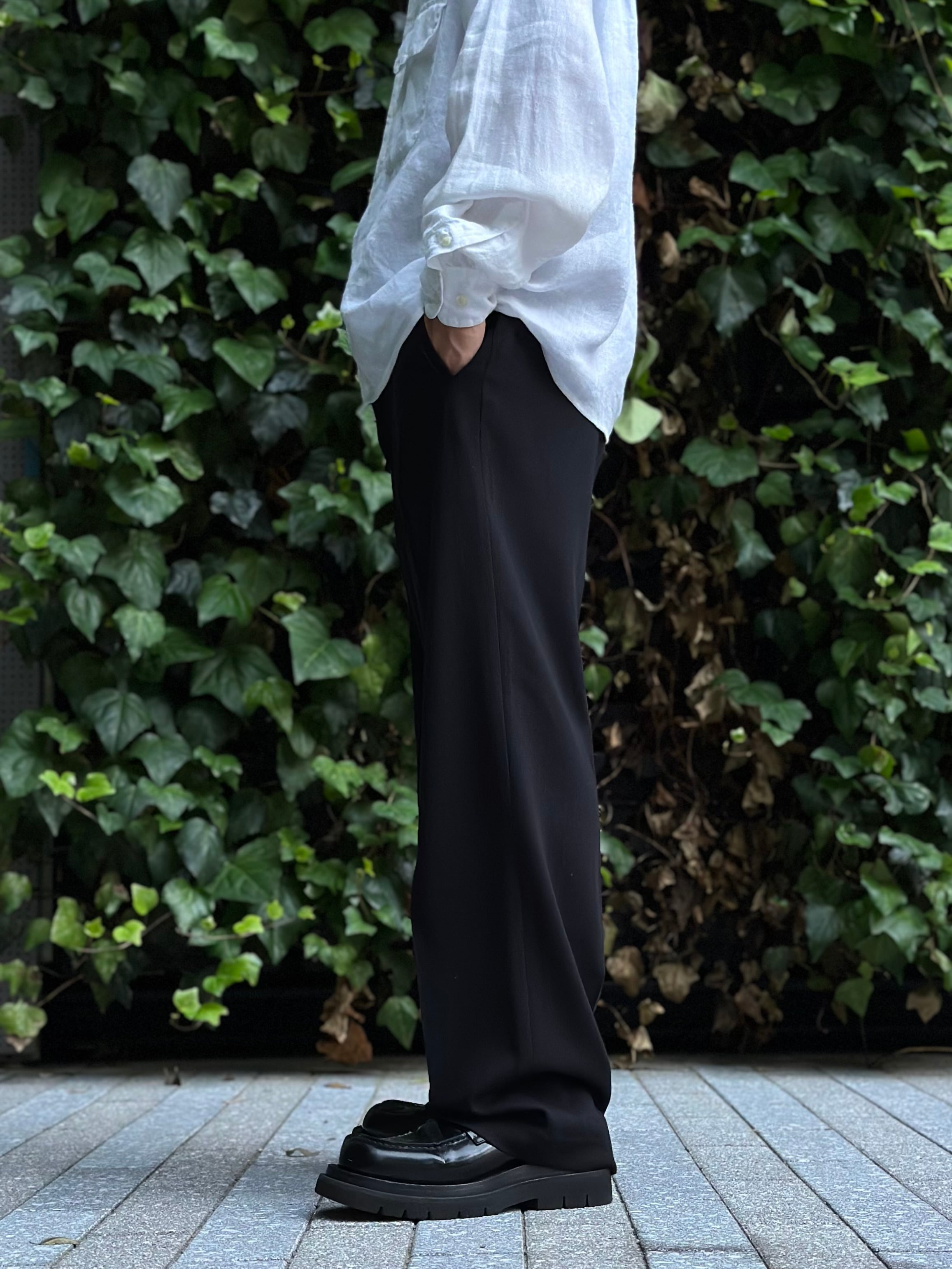ワタリに対して裾幅がしっかり広く、ストンと綺麗に落ちるストレートシルエット。